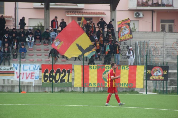 Prima del fischio d’inizio entrambe le società rispondono presente all’appello lanciato nei giorni scorsi dalla Lnd Abruzzo per combattere il razzismo al grido di “Mettiamo in fuorigioco il razzismo”. Tutti in campo con un piccolo segno di color verde disegnato sul viso (simbolo della lotta contro le discriminazioni), poi al fischio d’inizio i giallorossi fanno capire di essere come sempre affamati. Sulla destra Ciafardini spinge forte ma è Regner l’uomo in più dei giallorossi, impossibile da marcare, per gli avversari non c’è possibilità di sradicargli il pallone dai piedi. Il dieci argentino ci prova da fuori, l’estremo ospite risponde in due tempi. Salguero ci prova con una girata ma non è quella giusta, il Villa non riesce a essere mai pericoloso, si gioca in una sola metà campo con il duo offensivo argentino che crea altri pericoli. D Simone storce il naso quando perde l’esperto difensore classe ’83, problemino ai flessori e sostituzione con Traino. Al minuto quarantatré si sblocca il match, Salguero si allarga sulla destra, cross al bacio per Regner che di testa supera da due passi supera Giangiacomo. Rotto il ghiaccio il match è tutto in discesa ma i casalesi, per evitare rischi, chiudono i giochi già nel recupero del primo tempo, dalla sinistra inventa Regner, assist per capitan Della Penna che a centro area non sbaglia. Raddoppio e gol numero nove in stagione per l’esperto centrocampista vastese.