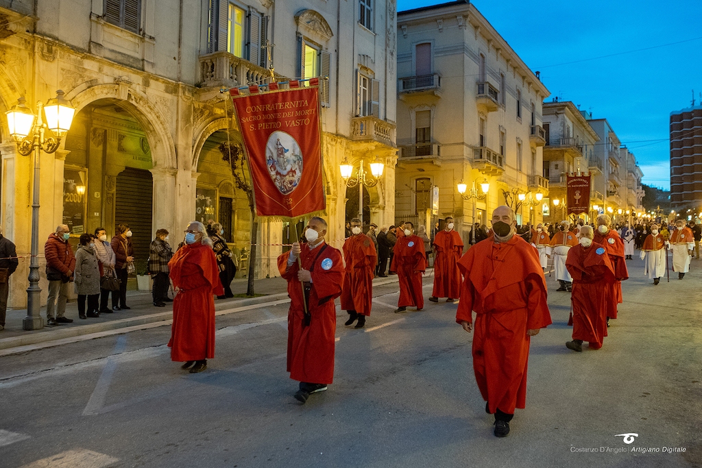 L’appuntamento più atteso era quello della solenne festa, vissuto con le attenzioni imposte dal periodo. Il percorso, che si è snodato lungo le vie del centro storico, è stato diverso rispetto al passato. Il lungo corteo è arrivato fino a via Adriatica. Lì, sulla balconata che si affaccia sul mare, monsignor Forte ha guidato la preghiera per la pace e per le persone che, per diversi motivi, vivono un periodo di sofferenza. Poi il passaggio in piazza Rossetti, via Cavour e corso Italia, prima di far rientro nella chiesa di Santa Maria maggiore, dove sulle note dell’Ave Spina, è terminata la celebrazione.