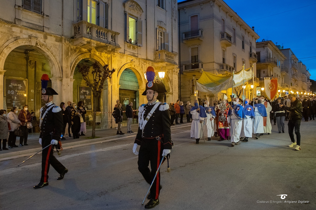 L’appuntamento più atteso era quello della solenne festa, vissuto con le attenzioni imposte dal periodo. Il percorso, che si è snodato lungo le vie del centro storico, è stato diverso rispetto al passato. Il lungo corteo è arrivato fino a via Adriatica. Lì, sulla balconata che si affaccia sul mare, monsignor Forte ha guidato la preghiera per la pace e per le persone che, per diversi motivi, vivono un periodo di sofferenza. Poi il passaggio in piazza Rossetti, via Cavour e corso Italia, prima di far rientro nella chiesa di Santa Maria maggiore, dove sulle note dell’Ave Spina, è terminata la celebrazione.