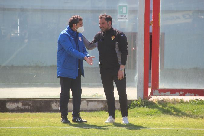 La partita – Mister D’Adderio, orfano di Diallo e Pierpaoli, ripropone dal primo minuto Scafetta nel tridente offensivo e Stivaletta in mediana con Agnello e Monza. Il tridente offensivo è completato da Ficara e Alessandro nel ruolo di centravanti. Davanti al portiere Di Rienzo (cinque “clean sheet” nelle ultime sei giornate) al centro capitan Di Filippo e Altobelli mentre sui lati spazio agli under Ceccacci e Tancredi. La capolista, lanciata verso la promozione in C, schiera in avanti l’ex di turno Daniel Giampaolo, in biancorosso nella stagione 2018/2019. In suo appoggio c’è Sbaffo, bomber del girone con 18 centri. Nel 442 l’allenatore Emanuele Pesaresi (in sostituzione di Pagliari, rimasto a Recanati perché non al meglio) sceglie Minicucci e Senigagliesi sui lati, Raparo e il 2000 Gomez nel cuore del gioco. Tra i pali spazio a Urbietis, il quartetto difensivo è guidato da Pacciardi, al suo fianco c’è Marafini, come terzini agiscono Somma e Quacquarelli.