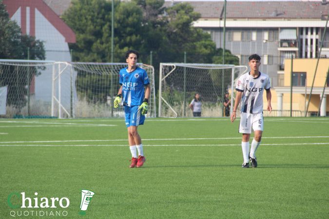 La partita – Non cambia lo spartito della Virtus Vasto, nel tridente offensivo c’è Mateescu supportato da Capitanio e Rossi. Alle loro spalle, sulla trequarti, galleggia Majo con capitan Ricciardi e Giangiulio nel cuore del gioco. Davanti al portiere D’Ermilio guidano la difesa Preta e Di Genni con Palmisciano e Caterino sulle corsie laterali. I biancoblu siciliani arrivano a Vasto dopo aver vinto in Sicilia e superato il primo scoglio “nazionale” vantando un organico con tutti nati nel 2006 e addirittura un 2008 (Maugeri, inizialmente in panchina). Al pronti via il Katane da l’impressione di essere più in palla anche se dalle parti di D’Ermilio non si affacciano mai. Davanti Mateescu e Majo sono ben controllati, gli ospiti però nulla possono di fronte allo strapotere di Alex Capitanio che al minuto numero venti si prende la scena: parte da centrocampo, ne salta tre come birilli e batte Maravigna per il vantaggio vastese. Sempre protagonista, nelle fasi finali, il 2006 di Tufillo autore di 15 gol con firme pesanti nella finalissima regionale e nel match decisivo contro la Cavese. Nonostante lo svantaggio i biancoblu tornano subito ad attaccare, ci prova Neri da fuori ma la conclusione di stampa sul palo, poi spazza lontanissimo Preta. I siciliani spingono, ci prova Limina ma D’Ermilio si supera e alza sulla traversa.