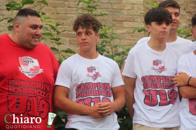 Non potevano mancare gli Allievi della Virtus Vasto campioni regionali e capaci di andare a un soffio del titolo nazionale. Complimenti indirizzati all’allenatore Donato Anzivino che nel ringraziare società e giocatori si è voluto complimentare con la Bacigalupo Vasto Marina per aver reso memorabile la semifinale poi vinta dalla Virtus. Sul palco poi sono saliti anche i biancazzurri, premiati per la vittoria del titolo sperimentale under 16 (Allievi) con in panchina mister Giancarlo Rapino. Il presidente Gianfranco Iammarino ha raccolto i complimenti e ha colto l’occasione per applaudire i cugini della Virtus Vasto per la vittoria del titolo. ”Doblete” e cocomplimenti anche per il Futsal Vasto under 19 vittorioso in campionato e Coppa fermandosi nelle fasi nazionali in semfinale. In ultimo le giovanissime della Vasto Volley capace di centrare una doppia promozione, meglio non poteva andare per la società, nata l’estate scorsa per volere di Giorgio Amorosi, presente sul palco in compagnia dell’allenatore Peppe Del Fra.