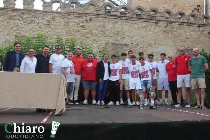 Non potevano mancare gli Allievi della Virtus Vasto campioni regionali e capaci di andare a un soffio del titolo nazionale. Complimenti indirizzati all’allenatore Donato Anzivino che nel ringraziare società e giocatori si è voluto complimentare con la Bacigalupo Vasto Marina per aver reso memorabile la semifinale poi vinta dalla Virtus. Sul palco poi sono saliti anche i biancazzurri, premiati per la vittoria del titolo sperimentale under 16 (Allievi) con in panchina mister Giancarlo Rapino. Il presidente Gianfranco Iammarino ha raccolto i complimenti e ha colto l’occasione per applaudire i cugini della Virtus Vasto per la vittoria del titolo. ”Doblete” e cocomplimenti anche per il Futsal Vasto under 19 vittorioso in campionato e Coppa fermandosi nelle fasi nazionali in semfinale. In ultimo le giovanissime della Vasto Volley capace di centrare una doppia promozione, meglio non poteva andare per la società, nata l’estate scorsa per volere di Giorgio Amorosi, presente sul palco in compagnia dell’allenatore Peppe Del Fra.