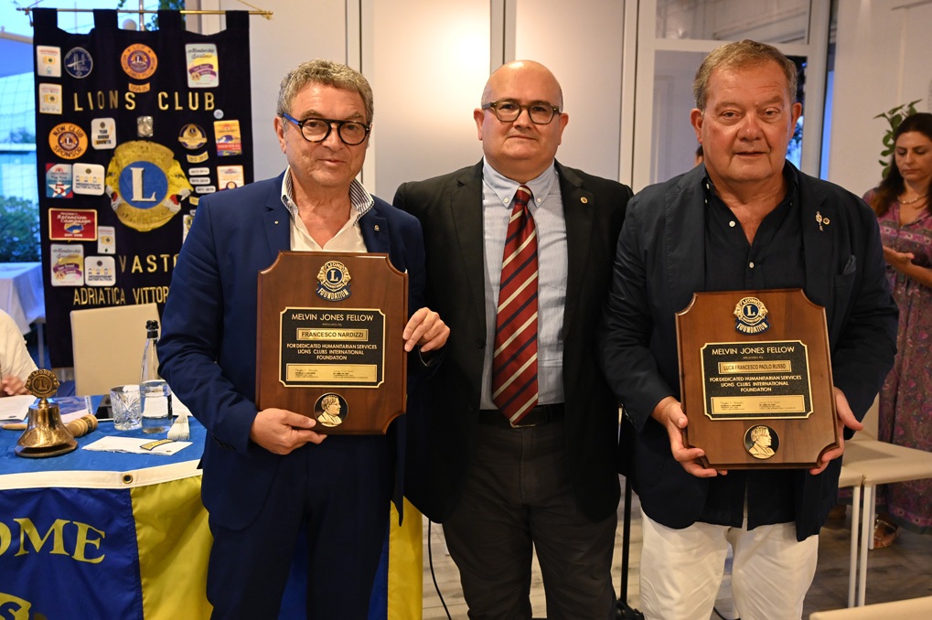 La cerimonia del Martelletto, invece, che ha visto tra gli altri la presenza dell’assessore alla Cultura e ai Servizi sociali del Comune di Vasto, Nicola Della Gatta, e del neo-presidente del Rotary Club Vasto, Beniamino Di Domenica, ha visto l’ultimo atto della presidenza di Luigi Spadaccini con la consegna di tre Melvin Jones Fellowship ad altrettanti soci, Italia Stramenga, assente alla cerimonia, Luca Francesco Paolo Russo e Francesco Nardizzi. Il presidente uscente ha tracciato, dunque, il resoconto dell’anno appena trascorso che «ha regalato grandi soddisfazioni al Lions Club nonostante le difficoltà correlate in primis alla recrudescenza pandemica. Un anno caratterizzato dalla capacità di realizzare service in tutte e cinque le cause umanitarie globali e di proporre service innovativi con valenza pluriennale».