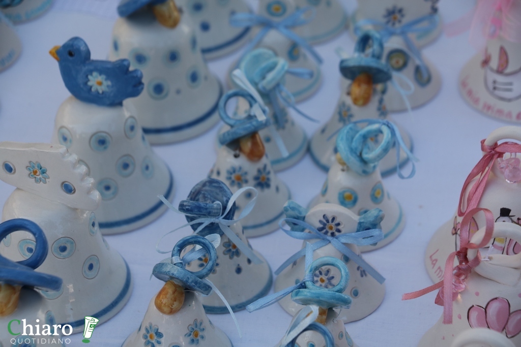 Tradizionale appuntamento in centro storico a Vasto con la Sagra delle Campanelle di San Rocco. Un appuntamento che ha origini antiche, legato al culto di San Rocco che, nelle sue peregrinazioni, si accompagnava con un bastone sormontato da una campanella. Negli anni ’60, su impulso dell’Azienda Autonoma di Soggiorno e Turismo, la Sagra delle campanelle è divenuta una appuntamento atteso del ferragosto vastese, che ha nel 16 agosto i suoi appuntamenti centrali. Sagra delle Campanelle, concerto a Vasto Marina e fuochi pirotecnici sul mare con gli ultimi due eventi che, quest’anno, non si svolgeranno per i lavori in corso sulla spiaggia in vista del Jova Beach Party. Non è mancato però, l’appuntamento con l’artigianato, in un centro storico che ha preso vita sin dalle prime ore del mattino, quando gli espositori hanno iniziato ad allestire le bancarelle.