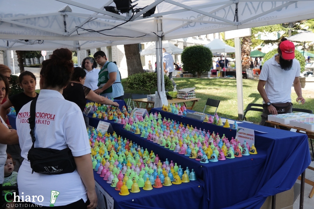 Tradizionale appuntamento in centro storico a Vasto con la Sagra delle Campanelle di San Rocco. Un appuntamento che ha origini antiche, legato al culto di San Rocco che, nelle sue peregrinazioni, si accompagnava con un bastone sormontato da una campanella. Negli anni ’60, su impulso dell’Azienda Autonoma di Soggiorno e Turismo, la Sagra delle campanelle è divenuta una appuntamento atteso del ferragosto vastese, che ha nel 16 agosto i suoi appuntamenti centrali. Sagra delle Campanelle, concerto a Vasto Marina e fuochi pirotecnici sul mare con gli ultimi due eventi che, quest’anno, non si svolgeranno per i lavori in corso sulla spiaggia in vista del Jova Beach Party. Non è mancato però, l’appuntamento con l’artigianato, in un centro storico che ha preso vita sin dalle prime ore del mattino, quando gli espositori hanno iniziato ad allestire le bancarelle.