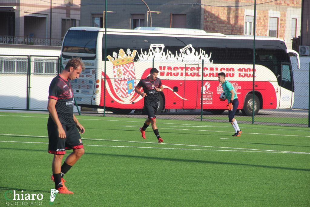 In campo si sono sfidate in tre match da quarantacinque minuti l’uno padroni di casa, Vastese e San Salvo. Proprio biancorossi e sansalvesi hanno aperto le danze con il primo fischio d’inizio avvenuto alle 18, in campo mister Ferazzoli ha mandato in campo l’undici tipo. 352 con Del Giudice tra i pali, nel terzetto difensivo capitan Altobelli insieme a Romeo e Montebugnoli. Sulle corsie esterne spazio a Busetto e Sansone, nel cuore del gioco Greselin, Favo e Menna. Davanti tandem composto da Di Nardo e Calì. Quaranta cinque minuti senza storia, match sbloccato da Di Nardo al minuto sette e raddoppio servito da Calì al ventesimo. Cinque minuti più tardi tris firmato dal 2004 Thiago Menna e definitivo 4 a 0 con la doppietta di Calì. Diversi gli interventi di Cattafesta (ex di turno) a rendere meno pesante il passivo, uno dei titolarissimi biancazzurri in campo insieme ad altri senior come capitan Luongo, Pollutri, Farina, Molino e Triglione, quest’ultimo insieme a Galiè (entrato nel finale) unici in campo ad aver indossato tutte e tre le maglie. Alcuni giovanissimi in prova, gli ex Vastese juniores Skubin e De Lucia, il 2002 Luca Ruzzi (ex Cupello e prossimo alla firma) e il 2004 Pardi nella scorsa stagione con il Termoli in Promozione molisana.