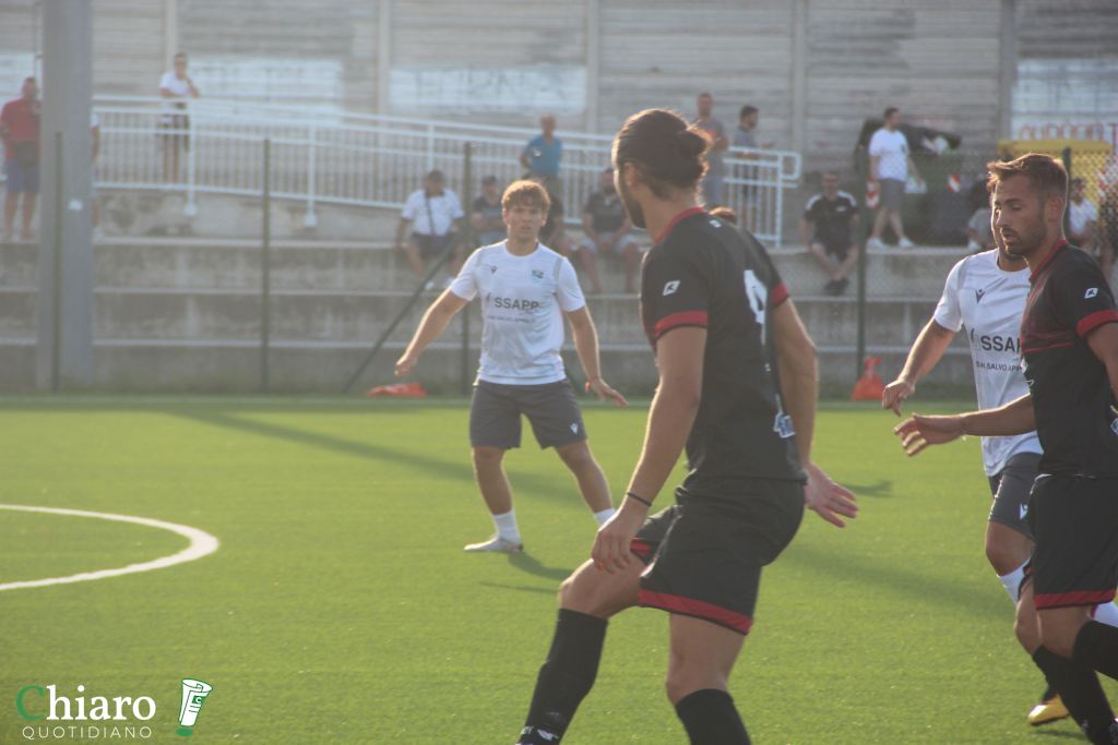 In campo si sono sfidate in tre match da quarantacinque minuti l’uno padroni di casa, Vastese e San Salvo. Proprio biancorossi e sansalvesi hanno aperto le danze con il primo fischio d’inizio avvenuto alle 18, in campo mister Ferazzoli ha mandato in campo l’undici tipo. 352 con Del Giudice tra i pali, nel terzetto difensivo capitan Altobelli insieme a Romeo e Montebugnoli. Sulle corsie esterne spazio a Busetto e Sansone, nel cuore del gioco Greselin, Favo e Menna. Davanti tandem composto da Di Nardo e Calì. Quaranta cinque minuti senza storia, match sbloccato da Di Nardo al minuto sette e raddoppio servito da Calì al ventesimo. Cinque minuti più tardi tris firmato dal 2004 Thiago Menna e definitivo 4 a 0 con la doppietta di Calì. Diversi gli interventi di Cattafesta (ex di turno) a rendere meno pesante il passivo, uno dei titolarissimi biancazzurri in campo insieme ad altri senior come capitan Luongo, Pollutri, Farina, Molino e Triglione, quest’ultimo insieme a Galiè (entrato nel finale) unici in campo ad aver indossato tutte e tre le maglie. Alcuni giovanissimi in prova, gli ex Vastese juniores Skubin e De Lucia, il 2002 Luca Ruzzi (ex Cupello e prossimo alla firma) e il 2004 Pardi nella scorsa stagione con il Termoli in Promozione molisana.