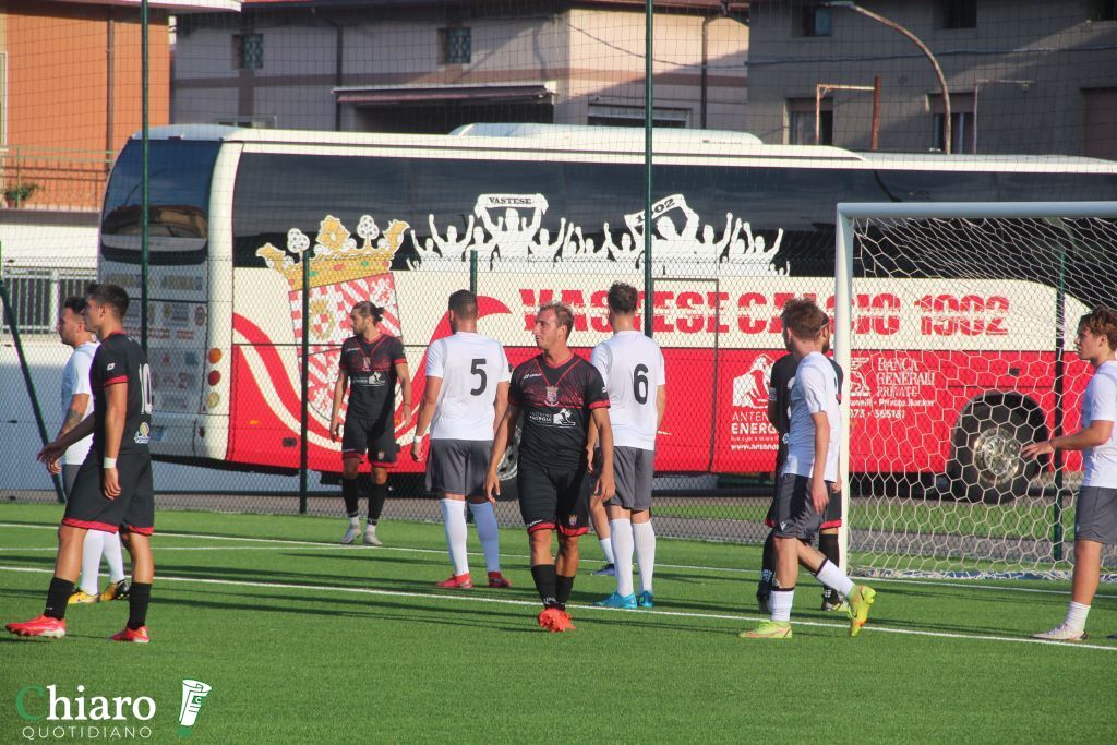 In campo si sono sfidate in tre match da quarantacinque minuti l’uno padroni di casa, Vastese e San Salvo. Proprio biancorossi e sansalvesi hanno aperto le danze con il primo fischio d’inizio avvenuto alle 18, in campo mister Ferazzoli ha mandato in campo l’undici tipo. 352 con Del Giudice tra i pali, nel terzetto difensivo capitan Altobelli insieme a Romeo e Montebugnoli. Sulle corsie esterne spazio a Busetto e Sansone, nel cuore del gioco Greselin, Favo e Menna. Davanti tandem composto da Di Nardo e Calì. Quaranta cinque minuti senza storia, match sbloccato da Di Nardo al minuto sette e raddoppio servito da Calì al ventesimo. Cinque minuti più tardi tris firmato dal 2004 Thiago Menna e definitivo 4 a 0 con la doppietta di Calì. Diversi gli interventi di Cattafesta (ex di turno) a rendere meno pesante il passivo, uno dei titolarissimi biancazzurri in campo insieme ad altri senior come capitan Luongo, Pollutri, Farina, Molino e Triglione, quest’ultimo insieme a Galiè (entrato nel finale) unici in campo ad aver indossato tutte e tre le maglie. Alcuni giovanissimi in prova, gli ex Vastese juniores Skubin e De Lucia, il 2002 Luca Ruzzi (ex Cupello e prossimo alla firma) e il 2004 Pardi nella scorsa stagione con il Termoli in Promozione molisana.