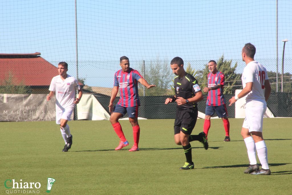 La partita – La principale novità adottata dal tecnico Peppe Soria è il passaggio al 352 con il terzetto difensivo guidato da capitan Felice insieme a Giuliano e De Fabritiis. Sulle corsie laterali agiscono Zaccardi e Troiano, nel cuore del gioco Tafili con Donatelli e Stivaletta mentre in avanti l’ultimo arrivato Dama Sene ha il supporto del 2006 Giardino. Partono dalla panchina Paravati e Napolitano, fuori causa D’Antonio e Seck. Modulo a specchio per i rossoblù che in attacco schierano Di Biase e Di Rosa. Sin dall’avvio si capisce quale sarà l’andamento del match, ci provano prima De Fabritiis e poi due volte Stivaletta. Il gol è nell’aria e arriva al minuto venti, punizione battuta da Tafili, lo specialista “Lupo” Felice sale in cielo e batte Di Muzio. Un minuto dopo ecco anche il raddoppio, un tiro-cross di De Fabritiis viene sporcato da Di Giandomenico diventando imparabile per l’estremo ospite. Nel finale di tempo altre occasioni a grappoli per i cupellesi che giocano sul velluto, il baby Giardino fa la barba al palo e il primo tempo si chiude con un doppio vantaggio rassicurante.