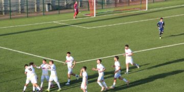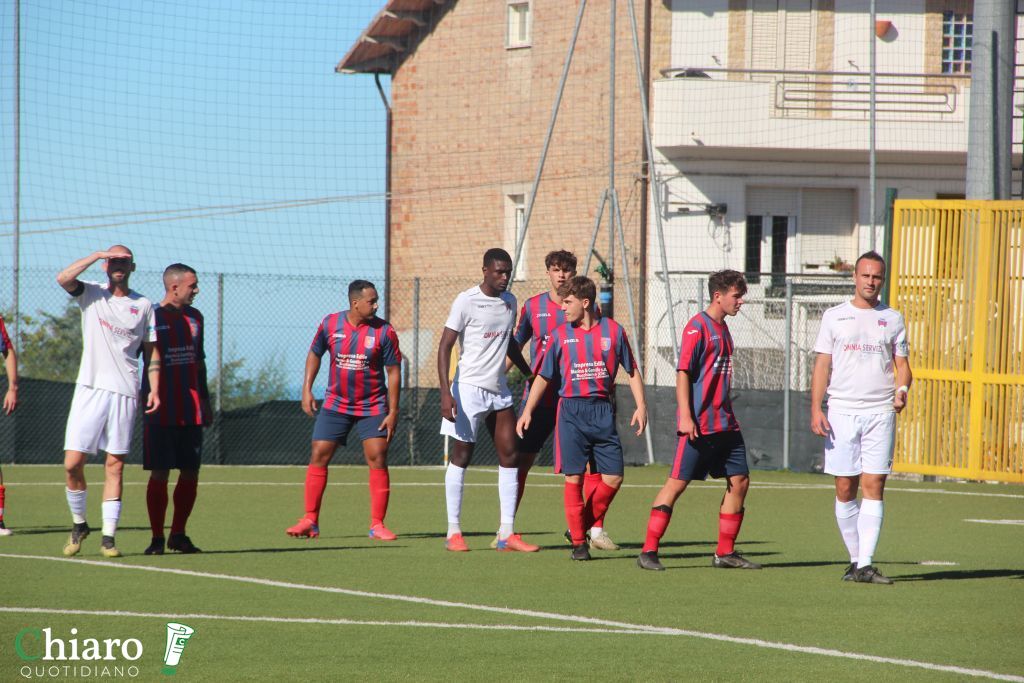 La partita – La principale novità adottata dal tecnico Peppe Soria è il passaggio al 352 con il terzetto difensivo guidato da capitan Felice insieme a Giuliano e De Fabritiis. Sulle corsie laterali agiscono Zaccardi e Troiano, nel cuore del gioco Tafili con Donatelli e Stivaletta mentre in avanti l’ultimo arrivato Dama Sene ha il supporto del 2006 Giardino. Partono dalla panchina Paravati e Napolitano, fuori causa D’Antonio e Seck. Modulo a specchio per i rossoblù che in attacco schierano Di Biase e Di Rosa. Sin dall’avvio si capisce quale sarà l’andamento del match, ci provano prima De Fabritiis e poi due volte Stivaletta. Il gol è nell’aria e arriva al minuto venti, punizione battuta da Tafili, lo specialista “Lupo” Felice sale in cielo e batte Di Muzio. Un minuto dopo ecco anche il raddoppio, un tiro-cross di De Fabritiis viene sporcato da Di Giandomenico diventando imparabile per l’estremo ospite. Nel finale di tempo altre occasioni a grappoli per i cupellesi che giocano sul velluto, il baby Giardino fa la barba al palo e il primo tempo si chiude con un doppio vantaggio rassicurante.