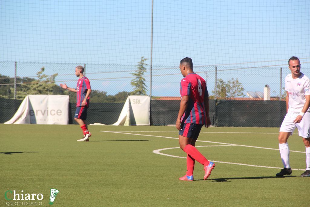La partita – La principale novità adottata dal tecnico Peppe Soria è il passaggio al 352 con il terzetto difensivo guidato da capitan Felice insieme a Giuliano e De Fabritiis. Sulle corsie laterali agiscono Zaccardi e Troiano, nel cuore del gioco Tafili con Donatelli e Stivaletta mentre in avanti l’ultimo arrivato Dama Sene ha il supporto del 2006 Giardino. Partono dalla panchina Paravati e Napolitano, fuori causa D’Antonio e Seck. Modulo a specchio per i rossoblù che in attacco schierano Di Biase e Di Rosa. Sin dall’avvio si capisce quale sarà l’andamento del match, ci provano prima De Fabritiis e poi due volte Stivaletta. Il gol è nell’aria e arriva al minuto venti, punizione battuta da Tafili, lo specialista “Lupo” Felice sale in cielo e batte Di Muzio. Un minuto dopo ecco anche il raddoppio, un tiro-cross di De Fabritiis viene sporcato da Di Giandomenico diventando imparabile per l’estremo ospite. Nel finale di tempo altre occasioni a grappoli per i cupellesi che giocano sul velluto, il baby Giardino fa la barba al palo e il primo tempo si chiude con un doppio vantaggio rassicurante.