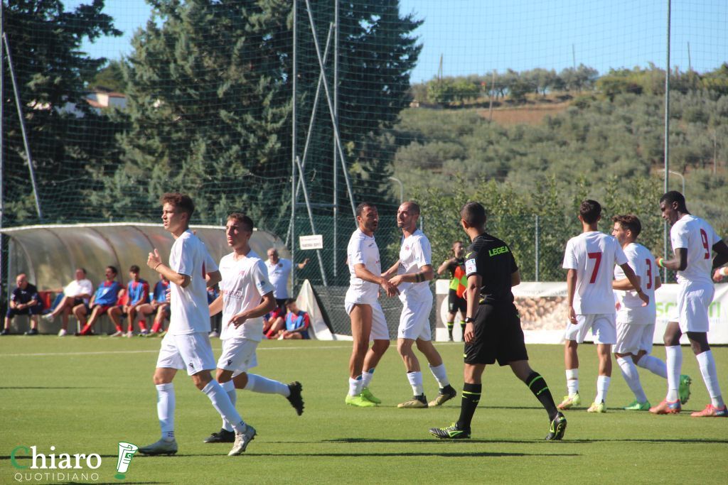 L’allenatore Lombardi prova a dare la scossa con tre cambi a inizio ripresa ma la situazione non cambia, il tris, ancora su palla inattiva, lo firma De Fabritiis e non contenti c’è anche il diagonale vincente di Zaccardi per il poker all’ora di gioco. Un risultato che potrebbe essere addirittura più corposo, le occasioni continuano ad esserci, ci prova Sene e anche il giovanissimo D’Ovidio da poco entrato. Felice si proietta in avanti, vuole la doppietta e la trova a tredici minuti dal novantesimo, il suo destro è vincente. Non finisce qui perché Napolitano e l’ultimo arrivato Paravati partecipano alla festa rossoblù e infilano il definitivo 7 a 0.