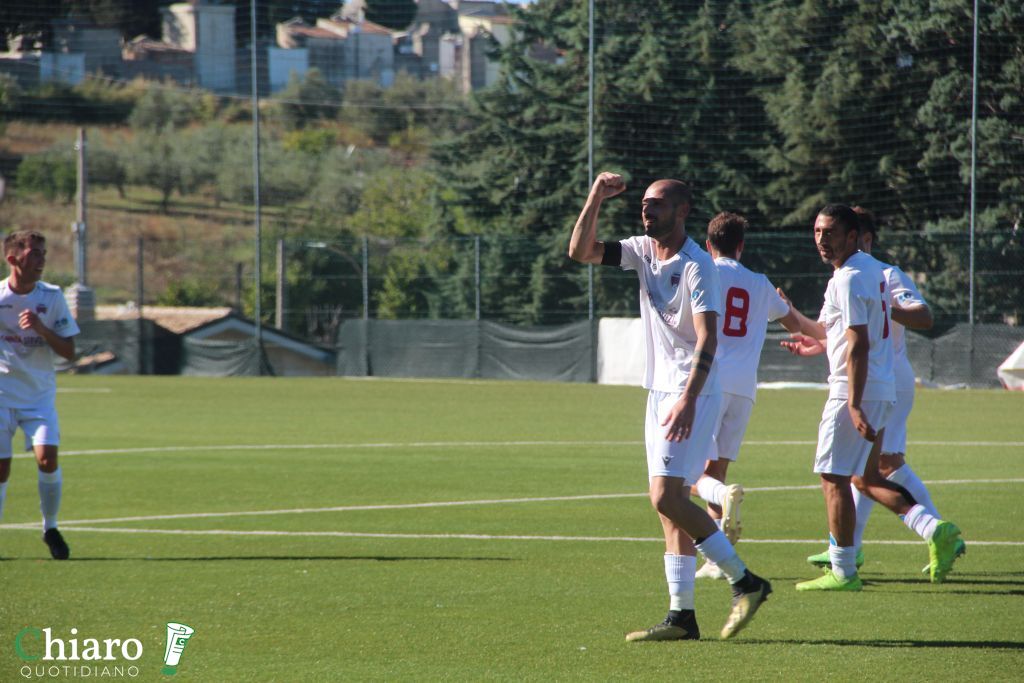 La partita – La principale novità adottata dal tecnico Peppe Soria è il passaggio al 352 con il terzetto difensivo guidato da capitan Felice insieme a Giuliano e De Fabritiis. Sulle corsie laterali agiscono Zaccardi e Troiano, nel cuore del gioco Tafili con Donatelli e Stivaletta mentre in avanti l’ultimo arrivato Dama Sene ha il supporto del 2006 Giardino. Partono dalla panchina Paravati e Napolitano, fuori causa D’Antonio e Seck. Modulo a specchio per i rossoblù che in attacco schierano Di Biase e Di Rosa. Sin dall’avvio si capisce quale sarà l’andamento del match, ci provano prima De Fabritiis e poi due volte Stivaletta. Il gol è nell’aria e arriva al minuto venti, punizione battuta da Tafili, lo specialista “Lupo” Felice sale in cielo e batte Di Muzio. Un minuto dopo ecco anche il raddoppio, un tiro-cross di De Fabritiis viene sporcato da Di Giandomenico diventando imparabile per l’estremo ospite. Nel finale di tempo altre occasioni a grappoli per i cupellesi che giocano sul velluto, il baby Giardino fa la barba al palo e il primo tempo si chiude con un doppio vantaggio rassicurante.