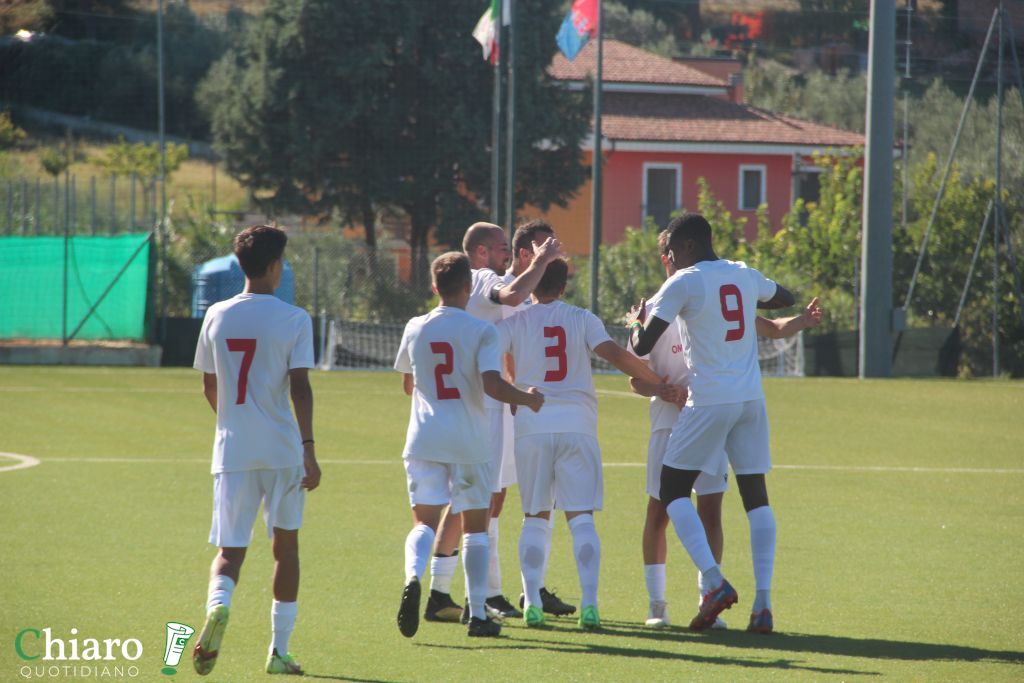 La partita – La principale novità adottata dal tecnico Peppe Soria è il passaggio al 352 con il terzetto difensivo guidato da capitan Felice insieme a Giuliano e De Fabritiis. Sulle corsie laterali agiscono Zaccardi e Troiano, nel cuore del gioco Tafili con Donatelli e Stivaletta mentre in avanti l’ultimo arrivato Dama Sene ha il supporto del 2006 Giardino. Partono dalla panchina Paravati e Napolitano, fuori causa D’Antonio e Seck. Modulo a specchio per i rossoblù che in attacco schierano Di Biase e Di Rosa. Sin dall’avvio si capisce quale sarà l’andamento del match, ci provano prima De Fabritiis e poi due volte Stivaletta. Il gol è nell’aria e arriva al minuto venti, punizione battuta da Tafili, lo specialista “Lupo” Felice sale in cielo e batte Di Muzio. Un minuto dopo ecco anche il raddoppio, un tiro-cross di De Fabritiis viene sporcato da Di Giandomenico diventando imparabile per l’estremo ospite. Nel finale di tempo altre occasioni a grappoli per i cupellesi che giocano sul velluto, il baby Giardino fa la barba al palo e il primo tempo si chiude con un doppio vantaggio rassicurante.