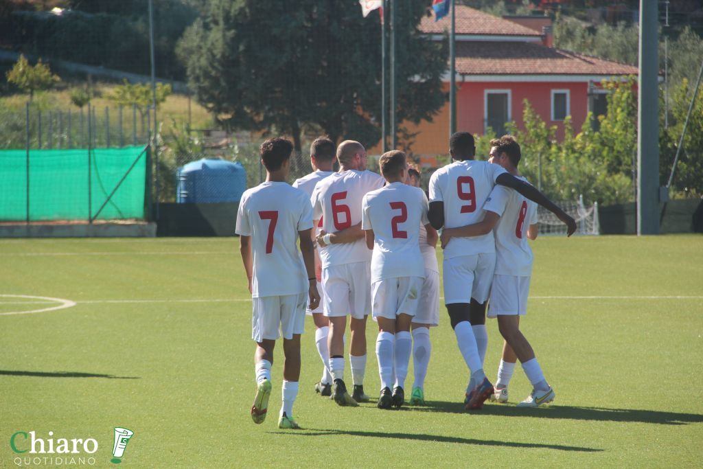 La partita – La principale novità adottata dal tecnico Peppe Soria è il passaggio al 352 con il terzetto difensivo guidato da capitan Felice insieme a Giuliano e De Fabritiis. Sulle corsie laterali agiscono Zaccardi e Troiano, nel cuore del gioco Tafili con Donatelli e Stivaletta mentre in avanti l’ultimo arrivato Dama Sene ha il supporto del 2006 Giardino. Partono dalla panchina Paravati e Napolitano, fuori causa D’Antonio e Seck. Modulo a specchio per i rossoblù che in attacco schierano Di Biase e Di Rosa. Sin dall’avvio si capisce quale sarà l’andamento del match, ci provano prima De Fabritiis e poi due volte Stivaletta. Il gol è nell’aria e arriva al minuto venti, punizione battuta da Tafili, lo specialista “Lupo” Felice sale in cielo e batte Di Muzio. Un minuto dopo ecco anche il raddoppio, un tiro-cross di De Fabritiis viene sporcato da Di Giandomenico diventando imparabile per l’estremo ospite. Nel finale di tempo altre occasioni a grappoli per i cupellesi che giocano sul velluto, il baby Giardino fa la barba al palo e il primo tempo si chiude con un doppio vantaggio rassicurante.