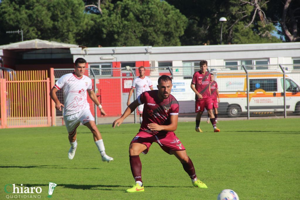 Sulle corsie agiscono Busetto e il brasiliano classe 2004 Zè Gomes, cuore del gioco guidato da Favo e Maiorano accompagnati da Sansone. Davanti intoccabile Di Nardo, ad assisterlo spazio per Calì. Il tecnico Mosconi è in totale emergenza, deve rinunciare in avanti all’esperienza dell’ex di turno Padovani. Non finisce qui, fuori causa altri tre senior come Broso, Brolè e Capezzani, in campo vanno cinque under. Nel 352 il tandem offensivo è composto dal 2004 Brunetti e il 2003 Serges, trentasette anni in due. Davanti al portiere Bizzini terzetto difensivo tutto senior, Mistura guida Bonacchi e Schiaroli. Sugli esterni Tomassini e Severini, in mediana Nappo con Niang e Zanni. L’approccio dei biancorossi lascia ben sperare, ci provano Di Nardo e Busetto ma la sfera sorvola di molto la traversa. I marchigiani in panchina sono telecomandati in panchina da Mosconi e al primo affondo sbloccano il match: Tomassini anticipa tutti sul primo, e sugli sviluppi di un angolo porta avanti il Tolentino. La reazione vastese è timida, sterile giro palla, un paio di punizioni di Maiorano e Di Nardo, niente di più.