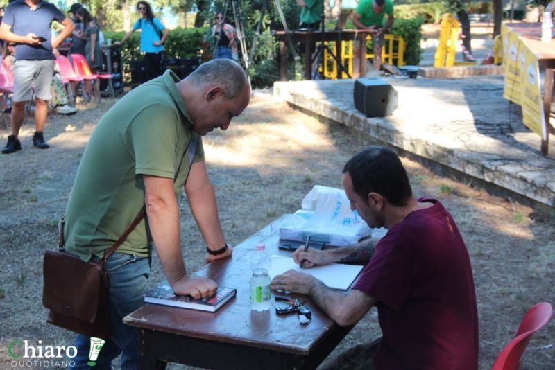 Le oltre mille persone che hanno “invaso” la villa comunale lo confermano, l’incontro con Zerocalcare è, finora l’evento clou dell’estate vastese. Michele Rech, arrivato a Vasto intorno alle 16 si è messo subito a lavoro con firma copie e i suoi famosi “disegnetti” senza lasciare deluso nessuno. Dovendo però soddisfare un serpentone di oltre trecento appassionati. I suoi lavori lasciano il segno, fumetti mai banali, ogni singola parola pesante come un macigno, dai racconti tra i No-Tav e quelli del G8 fino ad arrivare alle “missioni” in Turchia, Iraq e Siria.