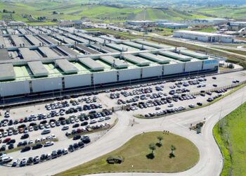 Lavori in corso nello stabilimento Stellantis Europe di Atessa per riparare i danni causati dalle forti raffiche di vento della ...