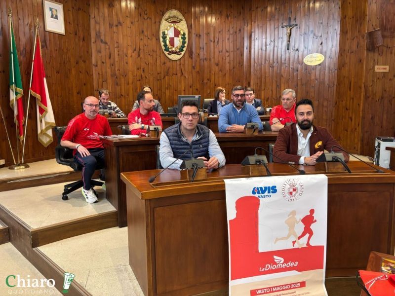 Le prime diciotto edizioni dal 1976 al 1993, poi, dopo 31 anni di lunghissima assenza, nel 2024, “La Diomedea” è tornata, come da tradizione il 1° maggio, ad animare centro storico, strade principali di Vasto toccando soprattutto gli scorci più incantevoli della nostra città. Storica gara podistica vastese che si rinnoverà anche tra nove giorni, giovedì 1° maggio sarà l’occasione per abbracciare la rinnovata edizione numero due. Un anno fa la presentazione della “ripartenza” avvenne nella sala “David Sassoli” di Palazzo Mattioli, oggi, la Podistica Vasto è stata accolta dal sindaco Francesco Menna e l’assessore allo Sport Carlo Della Penna nell’aula consiliare “Giuseppe Vennitti” del Comune di Vasto.