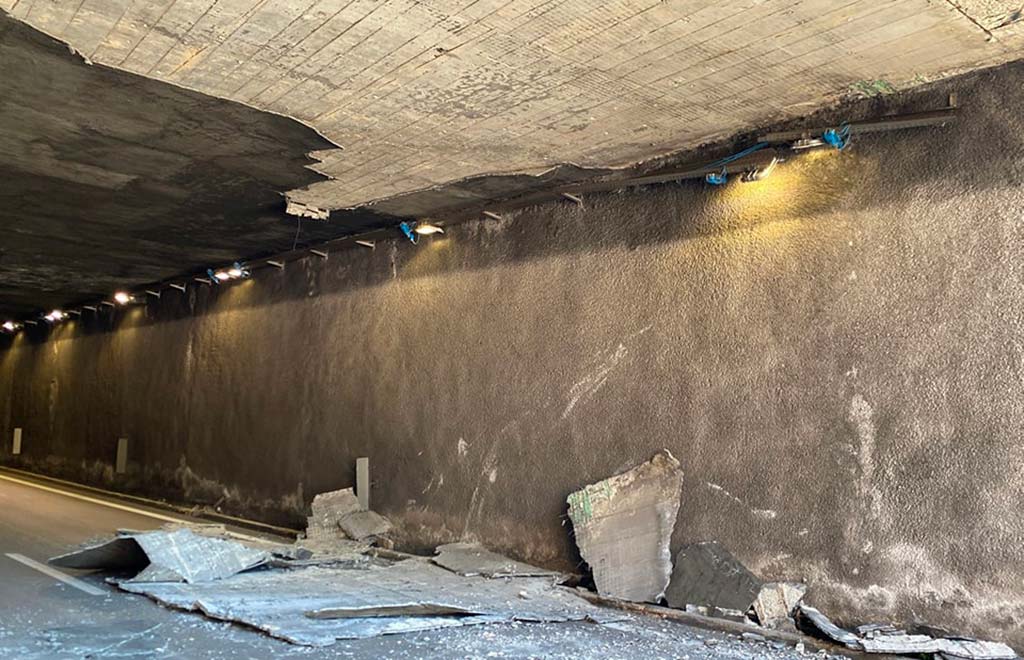 Sono ancora incerti i tempi di ripristino del piano di copertura della galleria Tricalle sulla Statale 656 “Val Pescara-Chieti”. Ieri mattina ampie porzioni di intonaco si sono staccate crollando sulle carreggiate.
