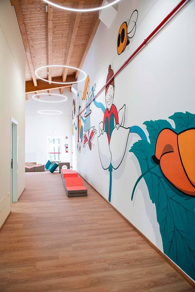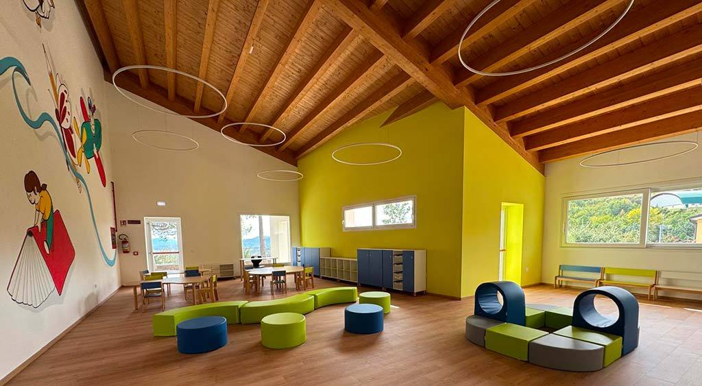 La struttura è impreziosita esternamente e all’interno dai murales dell’artista locale Luca Bruno, in fase di ultimazione. Da ieri, 29 settembre, le porte del nuovo polo si sono aperte ai bambini: si tratta di una delle prime opere terminate della citata linea di finanziamento.