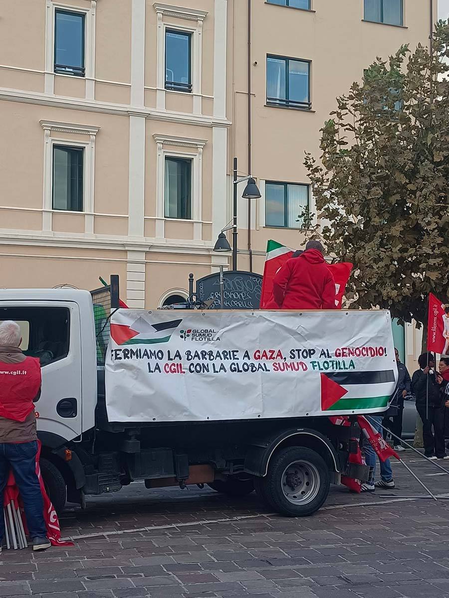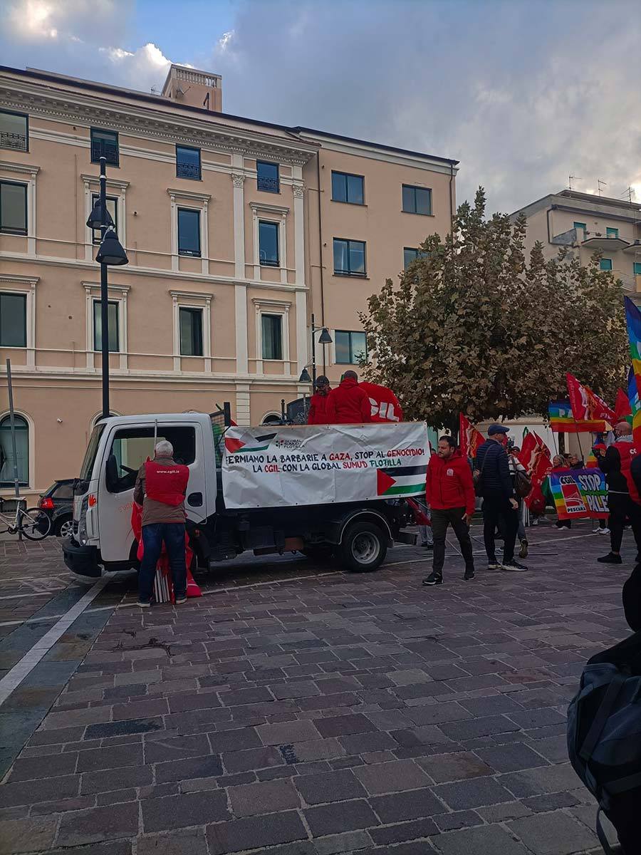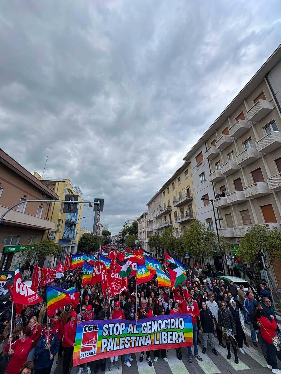 Alta adesione anche in Abruzzo allo sciopero generale proclamato da Cgil e Usb in solidarietà con la Global Sumud Flotilla e per chiedere al Governo una presa di posizione nei confronti di Israele. In Abruzzo i cortei hanno attraversato Pescara, Teramo e L’Aquila.