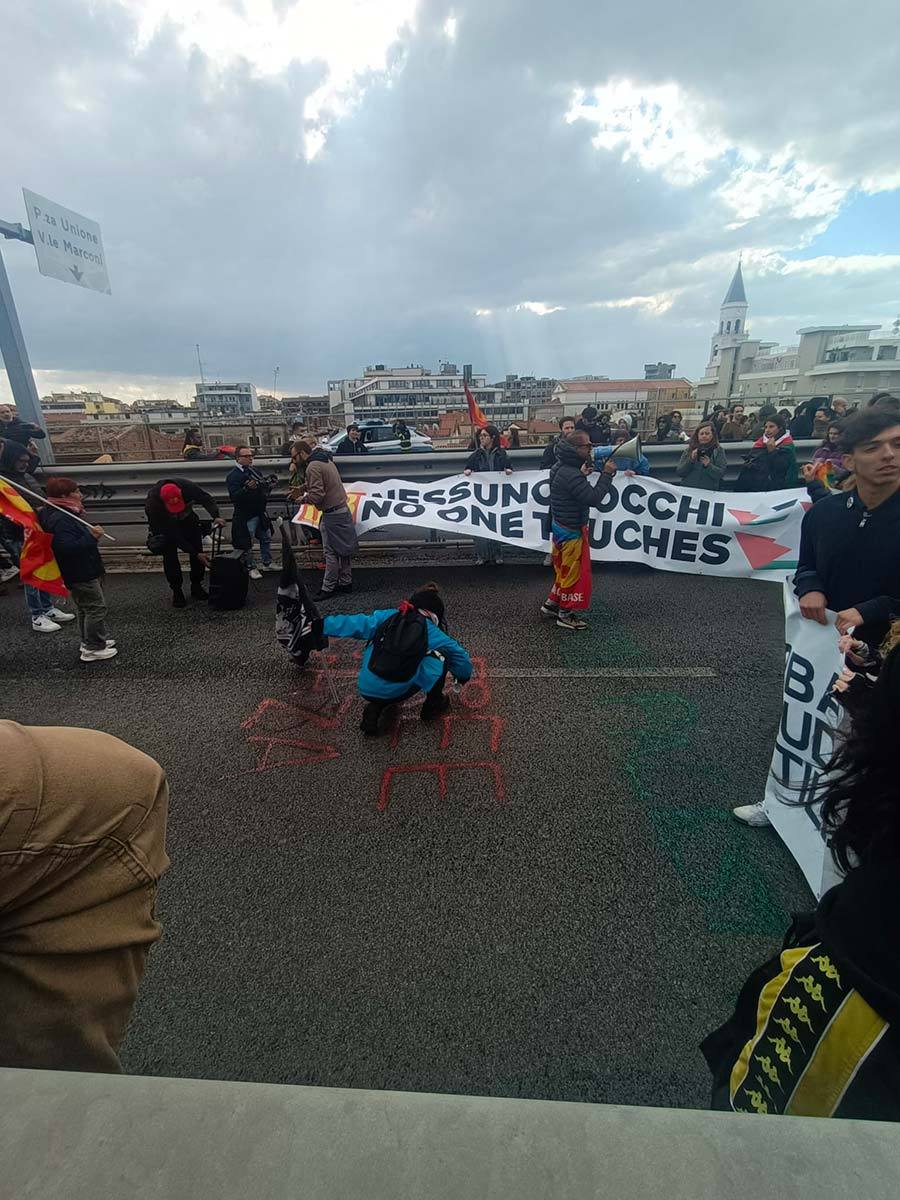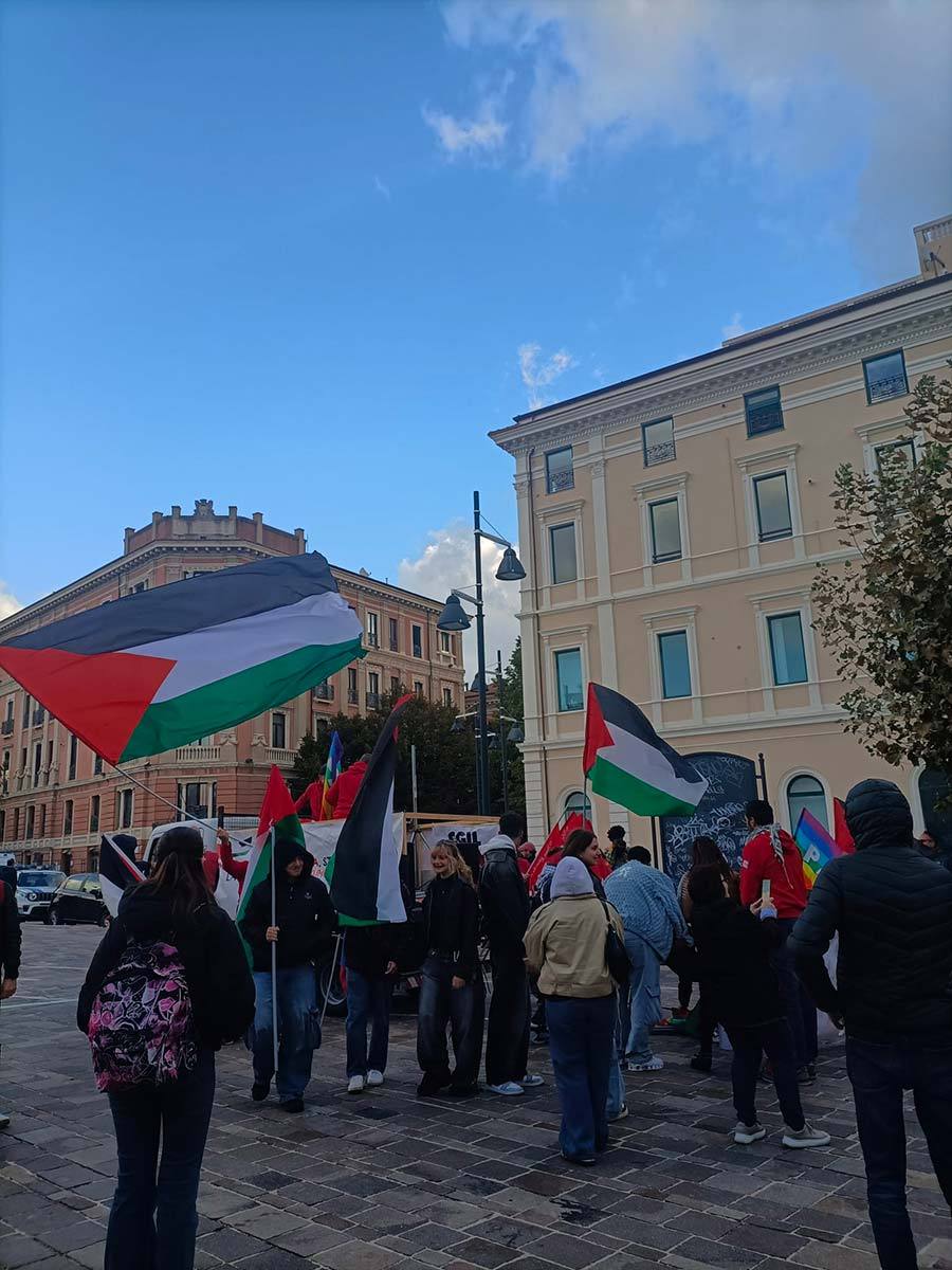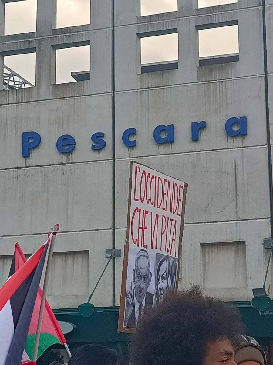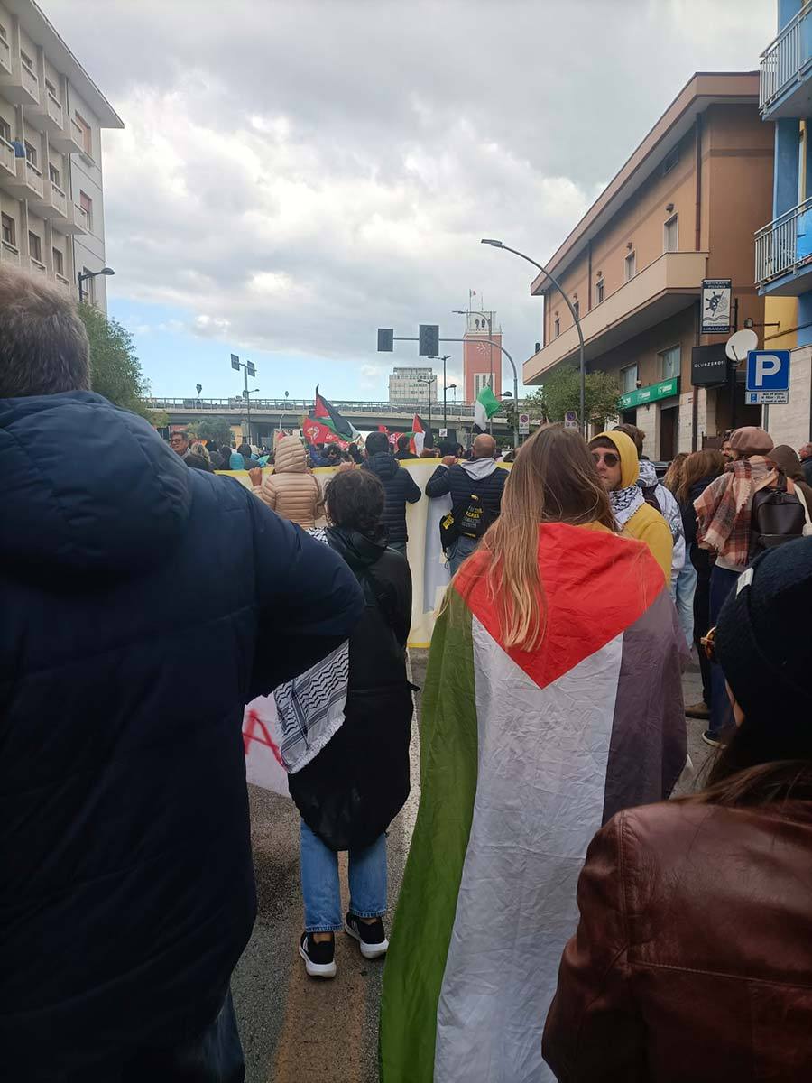 Nel capoluogo adriatico i manifestanti si sono ritrovati davanti alla stazione di Portanuova per poi dirigersi verso la prefettura in piazza Italia. Durante il tragitto un gruppo si è staccato dal corteo principale per cercare di bloccare l’asse attrezzato. Il traffico è stato bloccato per circa mezz’ora – dal corteo è stato scandito «Asse chiuso per genocidio» – prima dell’arrivo delle forze dell’ordine schierate in gran numero. Non si sono registrati particolari momenti di tensione.