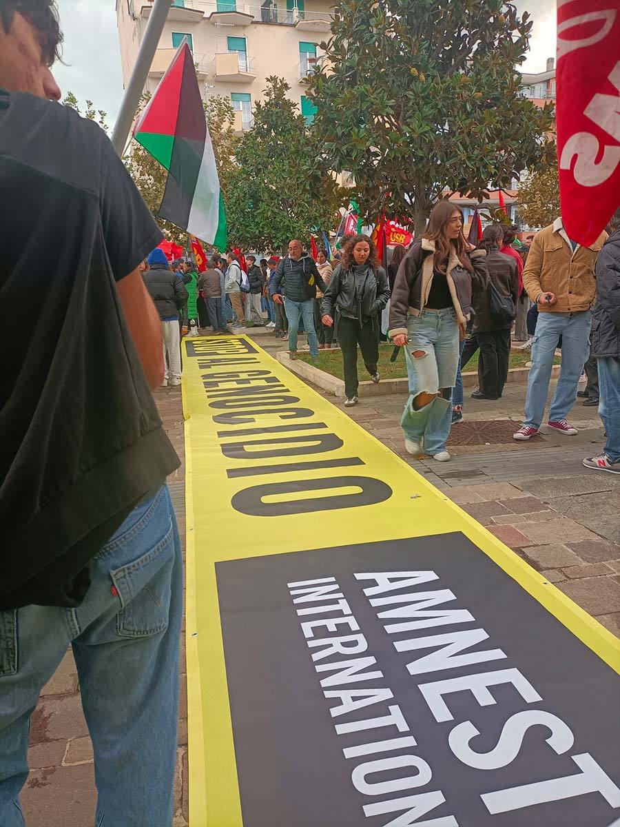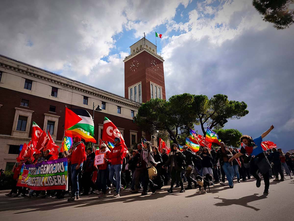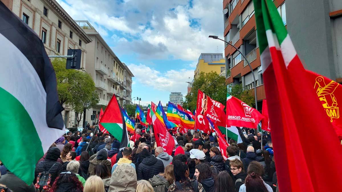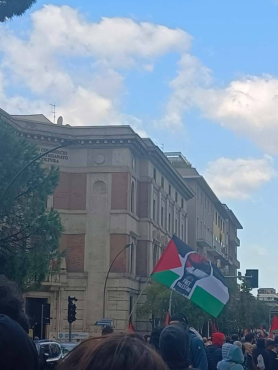 Nel capoluogo adriatico i manifestanti si sono ritrovati davanti alla stazione di Portanuova per poi dirigersi verso la prefettura in piazza Italia. Durante il tragitto un gruppo si è staccato dal corteo principale per cercare di bloccare l’asse attrezzato. Il traffico è stato bloccato per circa mezz’ora – dal corteo è stato scandito «Asse chiuso per genocidio» – prima dell’arrivo delle forze dell’ordine schierate in gran numero. Non si sono registrati particolari momenti di tensione.