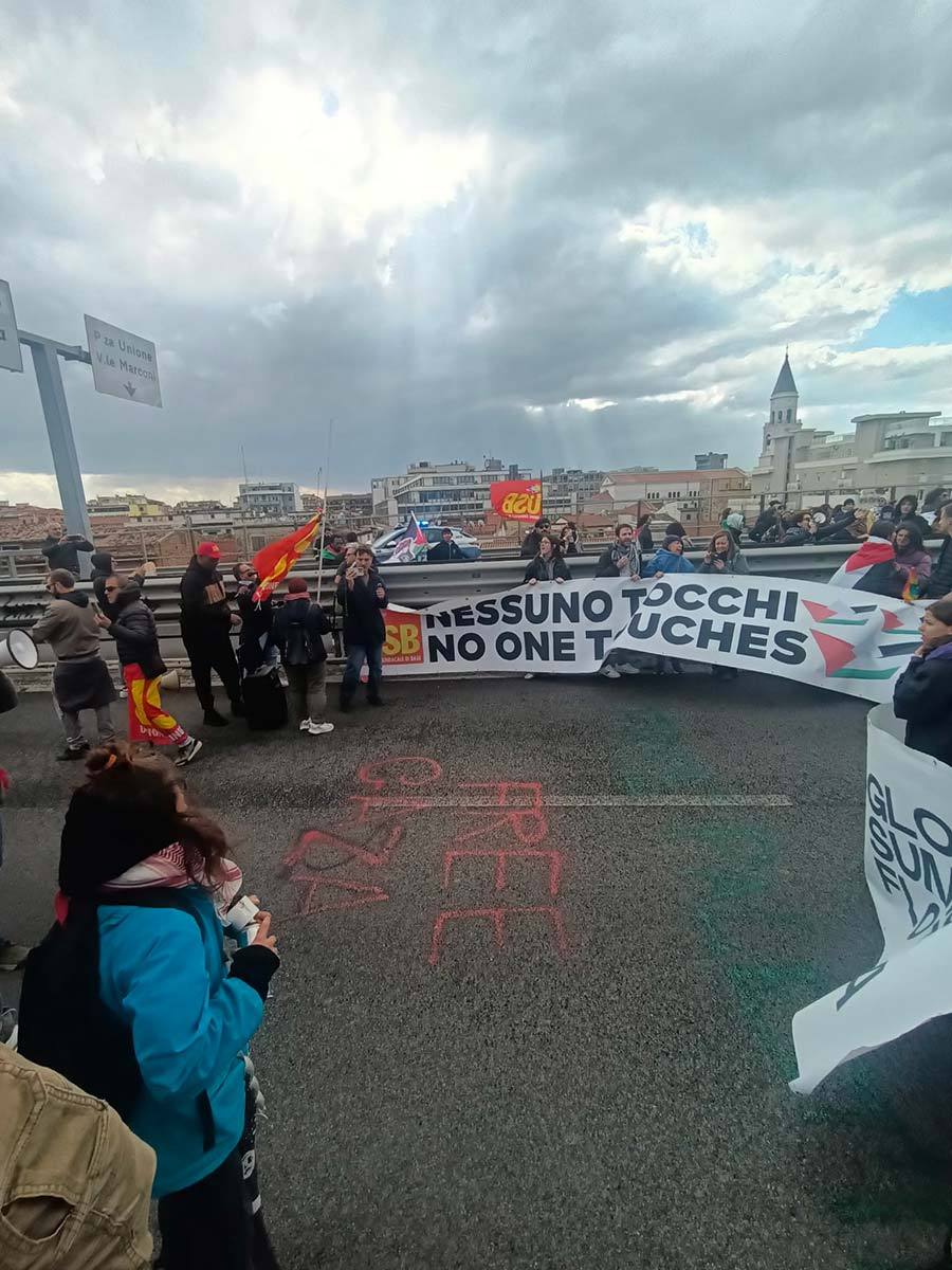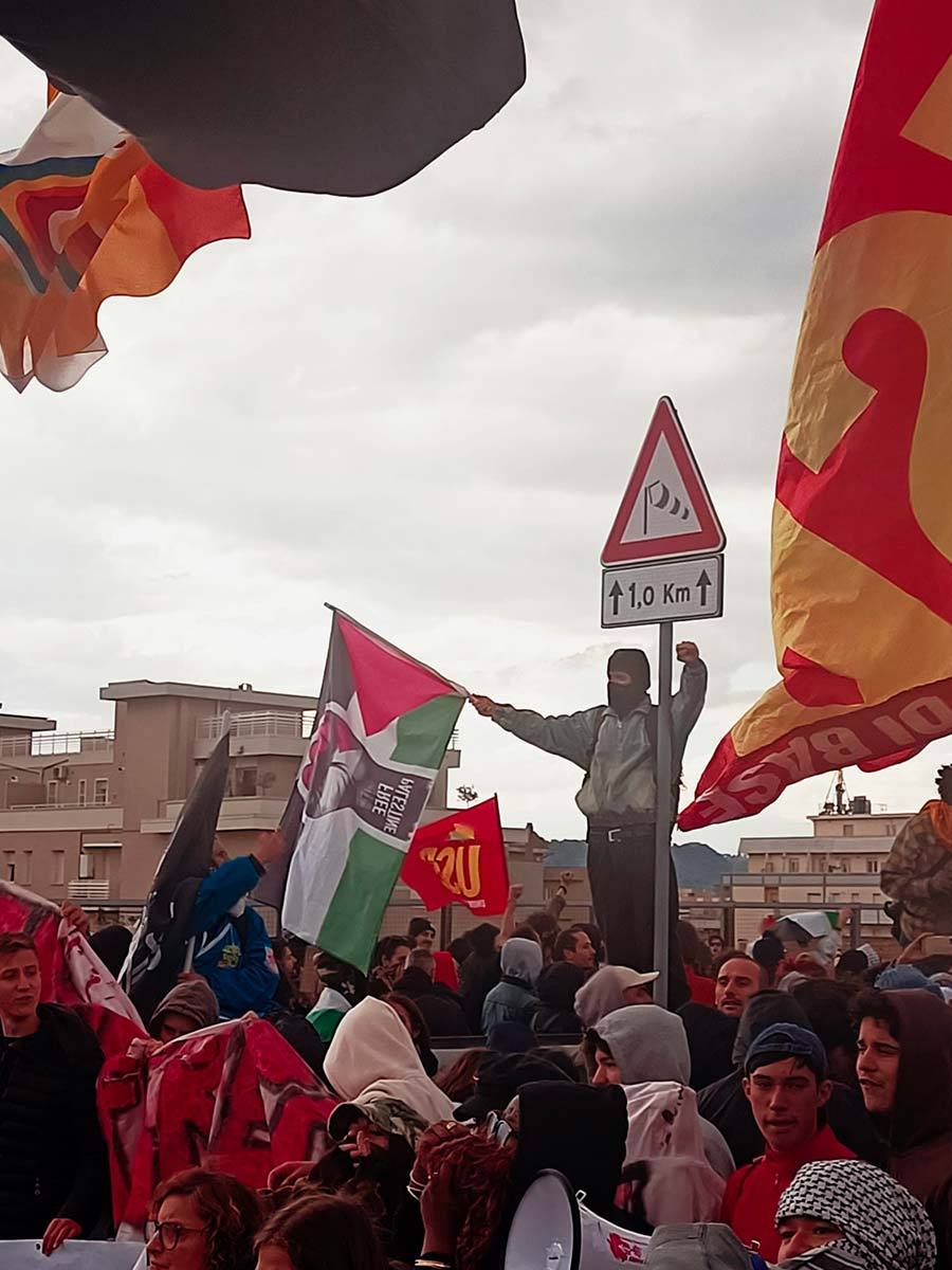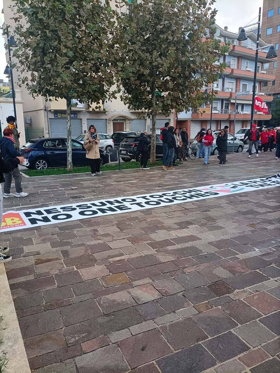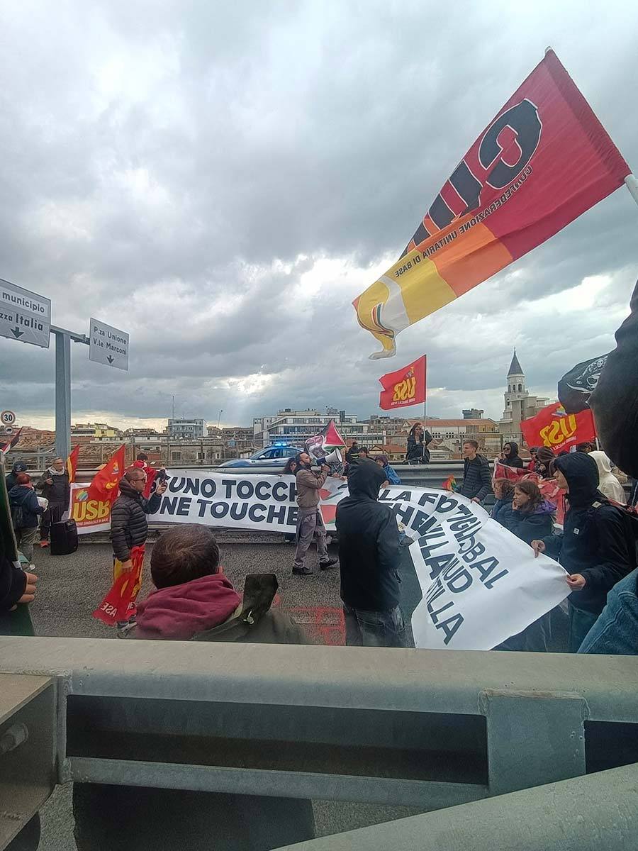 Nel capoluogo adriatico i manifestanti si sono ritrovati davanti alla stazione di Portanuova per poi dirigersi verso la prefettura in piazza Italia. Durante il tragitto un gruppo si è staccato dal corteo principale per cercare di bloccare l’asse attrezzato. Il traffico è stato bloccato per circa mezz’ora – dal corteo è stato scandito «Asse chiuso per genocidio» – prima dell’arrivo delle forze dell’ordine schierate in gran numero. Non si sono registrati particolari momenti di tensione.