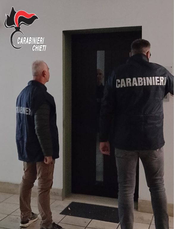 «Nel tardo pomeriggio di oggi» i militari «hanno dato esecuzione all’ordinanza di applicazione della misura cautelare emessa dal gip del tribunale di Lanciano nei confronti di 5 persone, in particolare: una misura della custodia cautelare in carcere; una misura dell’obbligo di dimora in Lanciano; una misura degli arresti domiciliari in Atessa; una misura degli arresti domiciliari presso la casa lavoro della casa circondariale di Vasto; una misura degli arresti domiciliari in Francavilla al Mare», si legge in un comunicato del Comando provinciale.