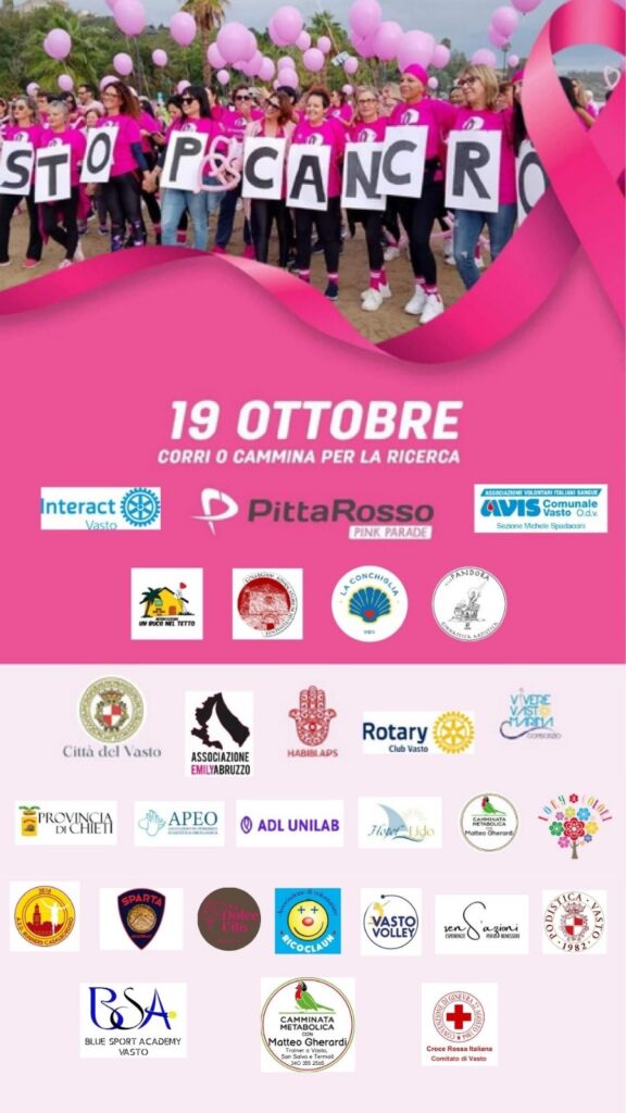 Il sindaco Francesco Menna e l’assessore alle Politiche sociali Anna Bosco sottolineano «l’importanza di unire le forze per diffondere messaggi di prevenzione e solidarietà, oltre all’importanza di sostenere la ricerca. Ottobre in Rosa rappresenta un invito a prendersi cura della propria salute, a informarsi e a condividere momenti di riflessione e partecipazione attiva con la comunità. Un ringraziamento prezioso a tutte le Associazioni di Vasto che hanno lavorato per questo progetto».