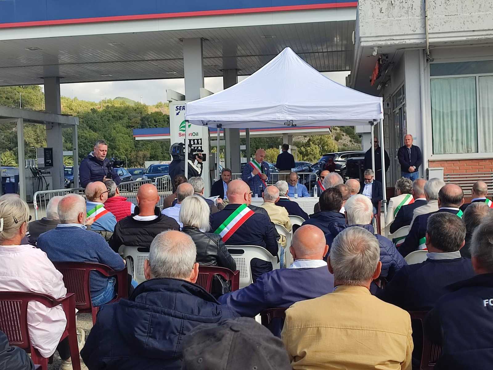 Sindaci protestano per rivendicare il diritto alla sicurezza stradale per i loro cittadini. La pericolosità della statale 650 Trignina coagula i primi cittadini delle aree interne d’Abruzzo e Molise nella richiesta (l’ennesima) di lavori di ampliamento invocati ormai da 25 anni. Con loro c’è l’ex ministro delle Infrastrutture, Antonio Di Pietro. Si sono ritrovati stamani, in fascia tricolore, nell’area di servizio Il Girasole, a Dogliola. Presenti alla manifestazione anche l’assessora regionale alle Attività produttive, Tiziana Magnacca, e i consiglieri regionali Francesco Prospero e Vincenzo Menna. Un incontro pubblico durato oltre due ore in cui diversi primi cittadini hanno preso la parola. Oltre al raddoppio della carreggiata, sul tavolo anche la questione autovelox.