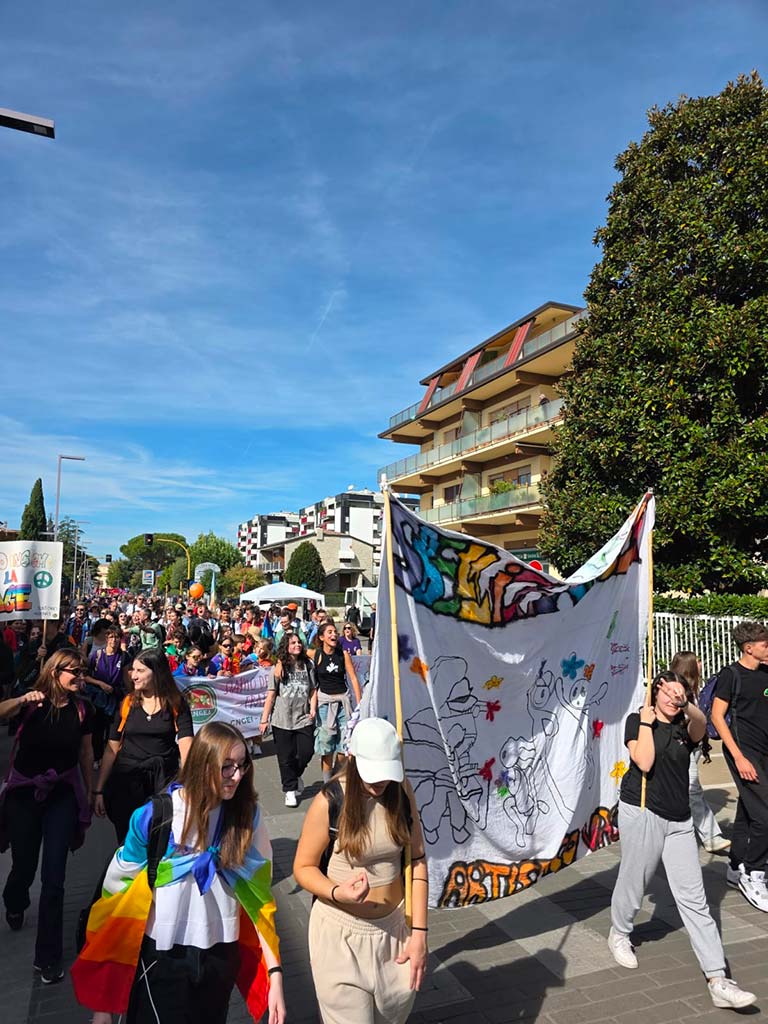 «L’adesione dei nostri studenti non è stata solo una partecipazione fisica, ma una vera e propria espressione di impegno civico e sociale – si legge in una nota della scuola – Il Pantini Pudente fa della marcia per la Pace un momento culminante di percorsi sull’ educazione civica, la pace e i diritti umani. È un modo concreto per dimostrare che l’educazione civica non è solo teoria ma azione, che gli studenti sono i veri costruttori di pace, che il cambiamento è possibile, un passo alla volta, partendo dalle proprie scelte quotidiane. Sono loro i veri costruttori di Pace di domani, e la strada è appena iniziata».