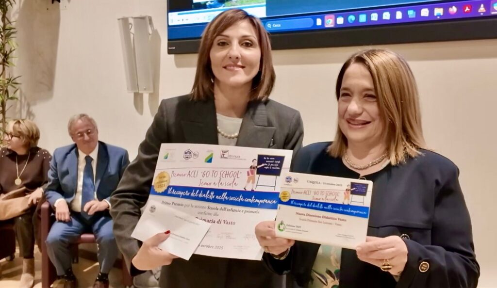 «Grande soddisfazione e motivo di orgoglio per la Scuola primaria San Lorenzo della Nuova Direzione Didattica Vasto, diretto dalla dottoressa Concetta Delle Donne,per essere risultata vincitrice nella terza edizione del concorso promosso da Acli Abruzzo, presidente Giuseppe Placidi, dal titolo Go to School. Il recupero dei dialetti d’Abruzzonella società contemporanea attraverso il canto corale». Lo comunica una nota dell’istituto scolastico.