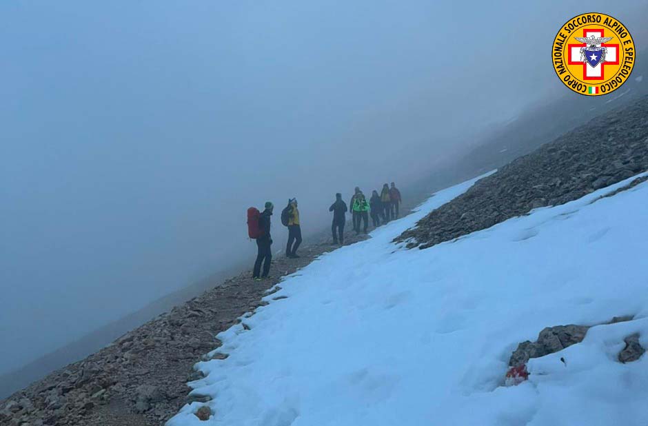 Intervento del Soccorso alpino e speleologico nel tardo pomeriggio di ieri sul Corno Grande per salvare due escursioniste che avevano perso l’orientamento lungo la Via Normale a causa della nebbia.