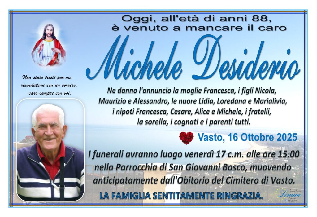 <!-- wp:image {"id":226461,"sizeSlug":"large","linkDestination":"none","align":"center"} --> <figure class="wp-block-image aligncenter size-large"><img src="https://chiaroquotidiano.it/wp-content/uploads/2025/10/desiderio-michele-1024x700.jpg" alt="" class="wp-image-226461"/></figure> <!-- /wp:image -->