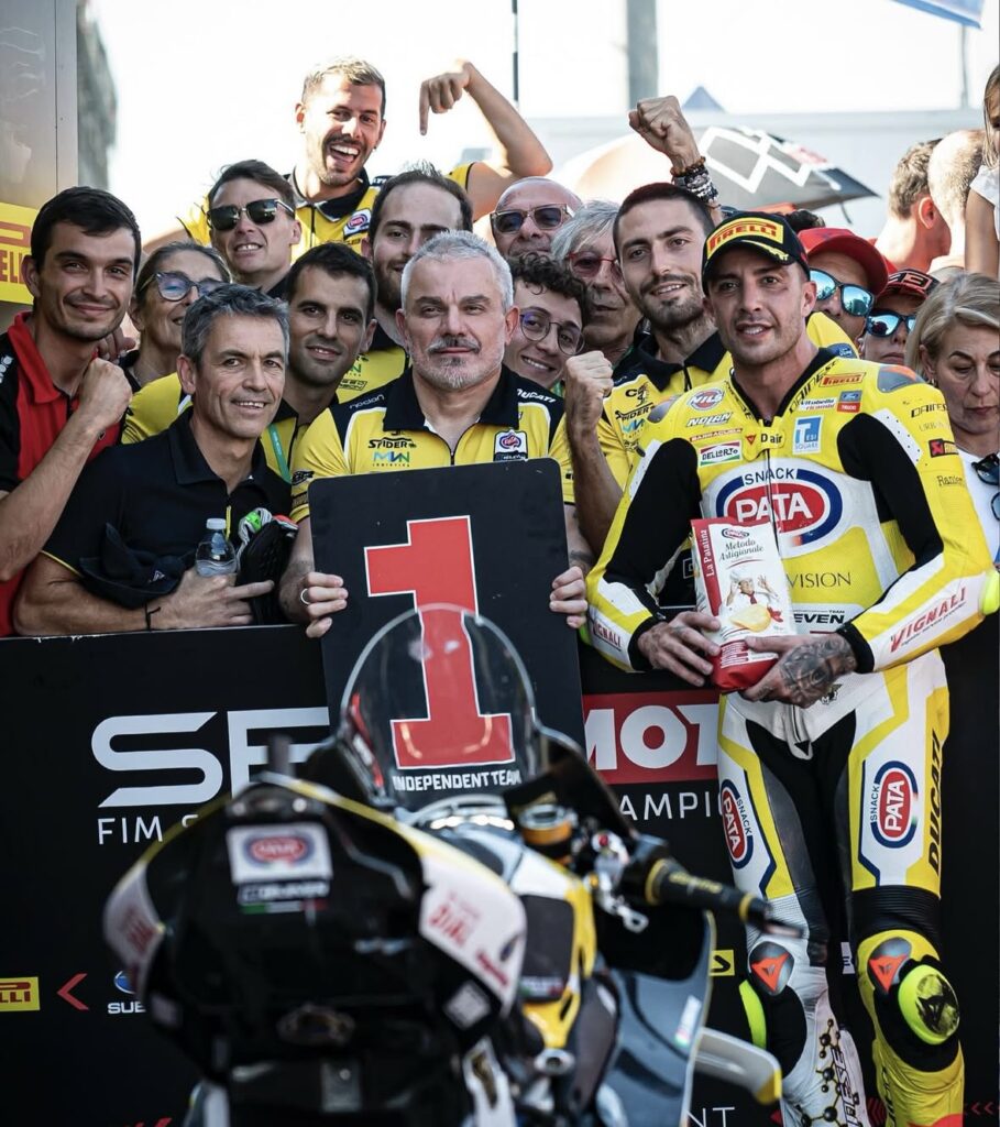 L’esperto pilota di Vasto, dopo il quarto posto del sabato, nei 10 giri della Superpole di questa mattina (domenica 19 ottobre), ha spinto forte riuscendo a tenersi alle spalle una temibile concorrenza. Impossibile reggere il passo di Bulega (fischiato a fine gara), il trentaseienne vastese ha concluso la mini gara con un ottimo terzo posto, davanti a lui anche Bautista.