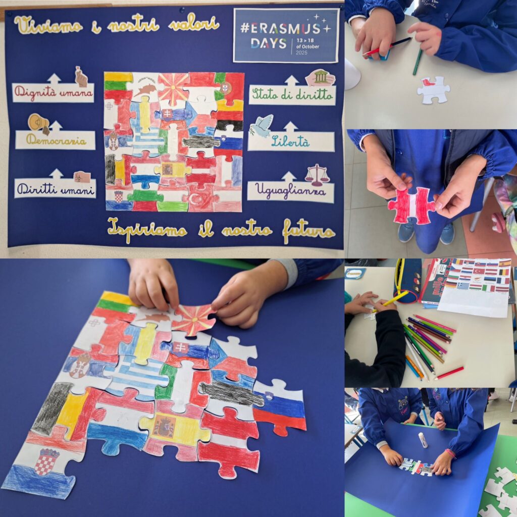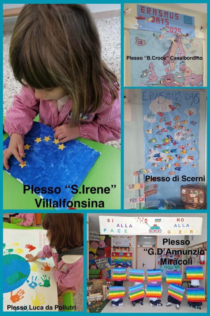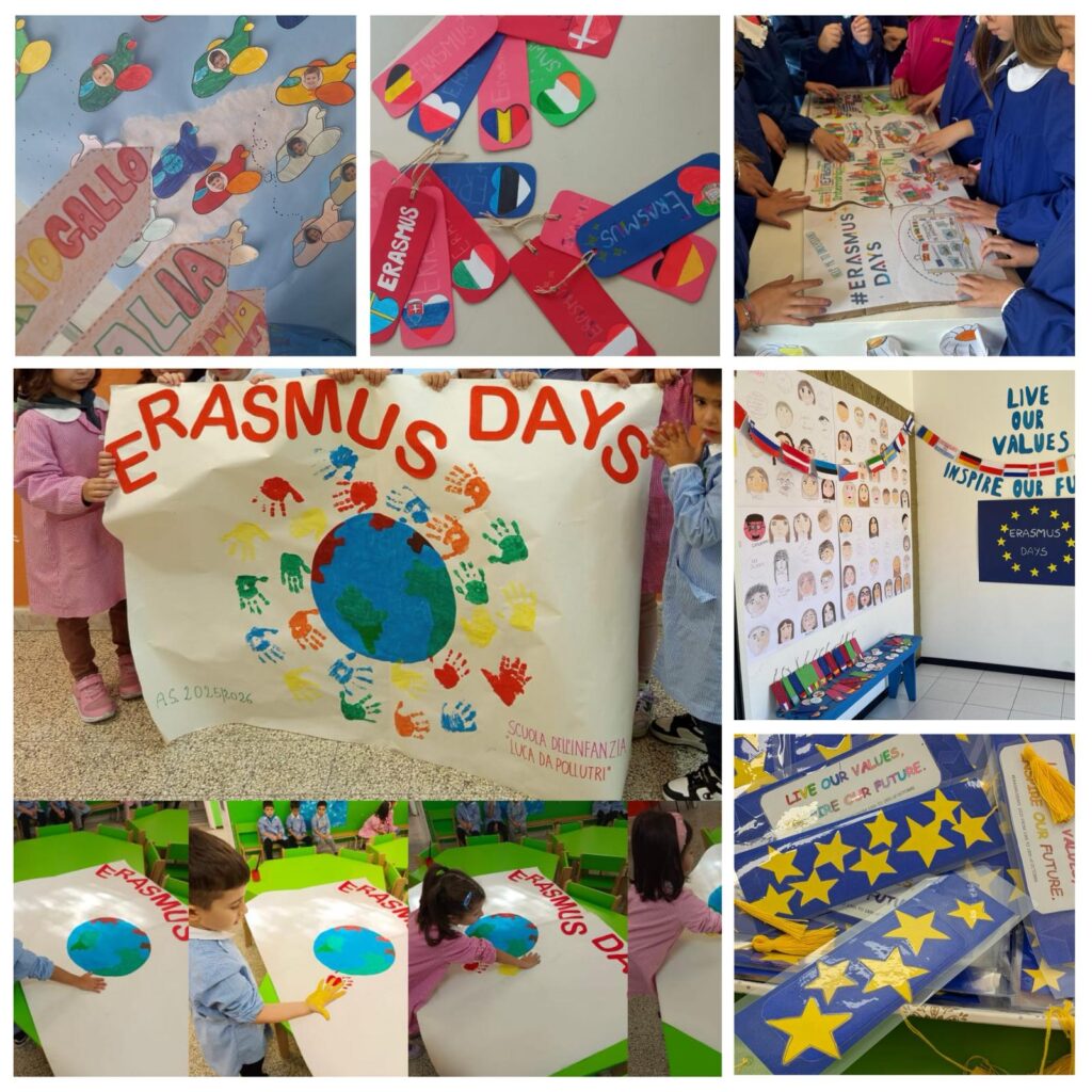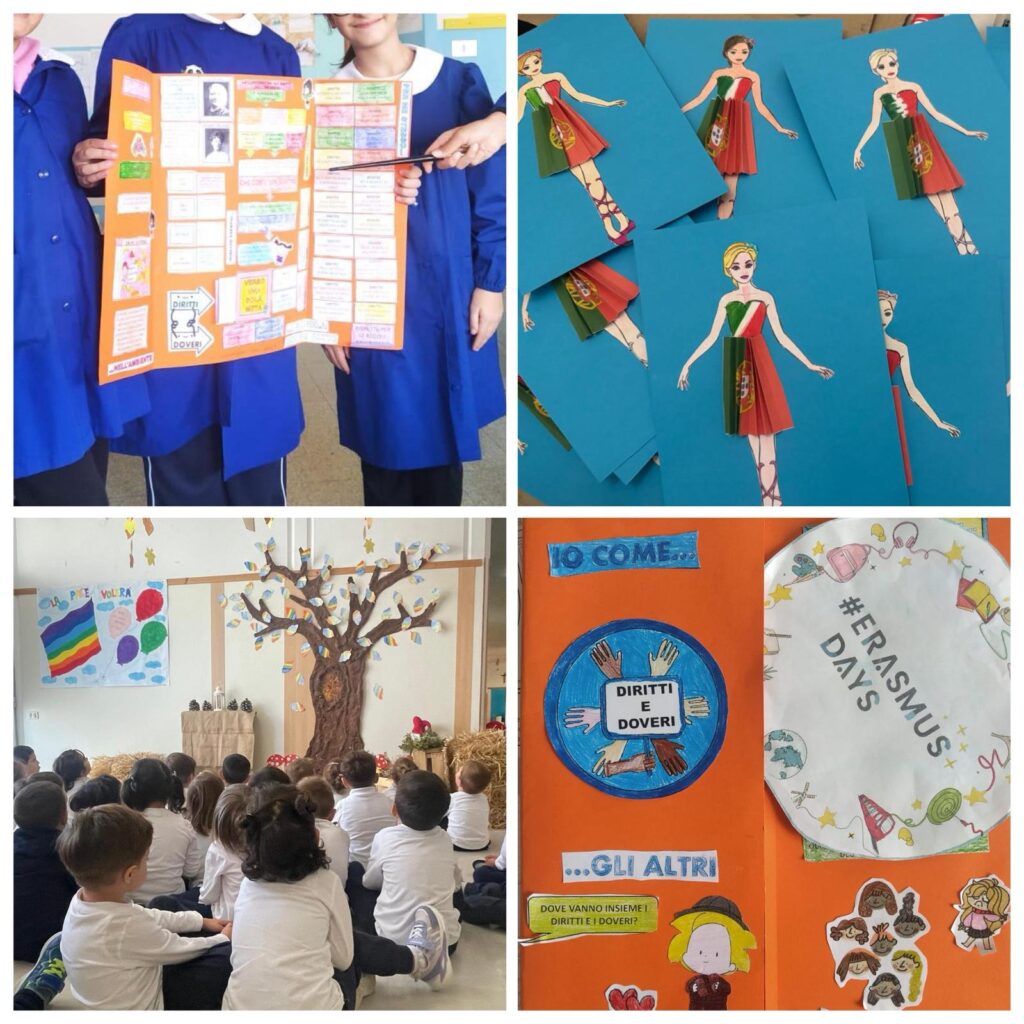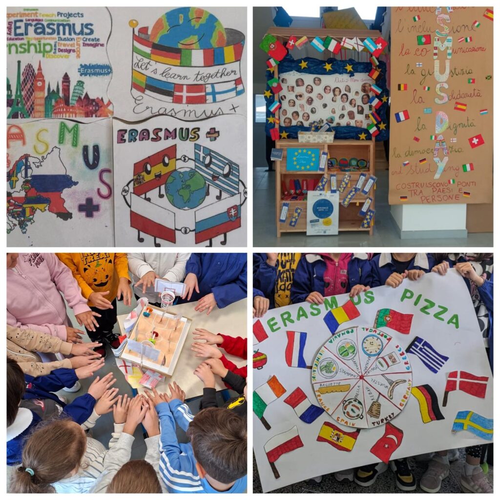 «Durante la settimana, alunni e docenti si sono impegnati nella preparazione di lavori creativi e riflessivi ispirati ai valori fondamentali dell’Erasmus e dell’Unione Europea: libertà, democrazia, uguaglianza, inclusione, dignità della persona, rispetto dei diritti umani, insieme ai concetti di condivisione di esperienze e promozione di una cittadinanza europea attiva. Le attività hanno preso forma in cartelloni, slogan, canti, gadget, coccarde, braccialetti, segnalibri e brochure, esposti in ciascun plesso scolastico negli appositi “Angoli Erasmus” allestiti con cura e creatività».