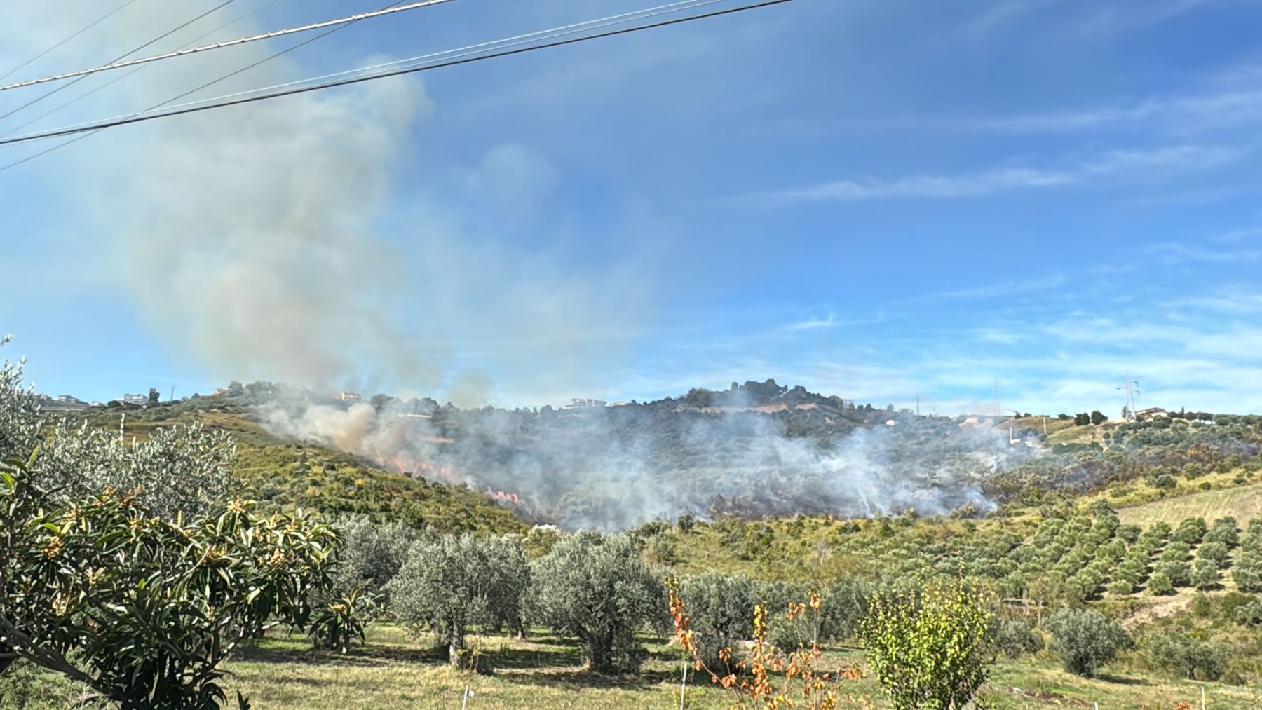 Un incendio è scoppiato stamani sul costone orientale di Vasto. L’allarme è scattato attorno alle 10,40, quando una densa colonna di fumo si vedeva chiaramente dalla statale 16. A fuoco sta andando un’ampia porzione di vegetazione del costone che da contrada Sant’Antonio Abate digrada verso il mare. Le fiamme minacciano i campi coltivati, in zona ci sono anche delle abitazioni. Impegnate le squadre dei vigili del fuoco del Distaccamento di via Madonna dell’Asilo. (In aggiornamento)