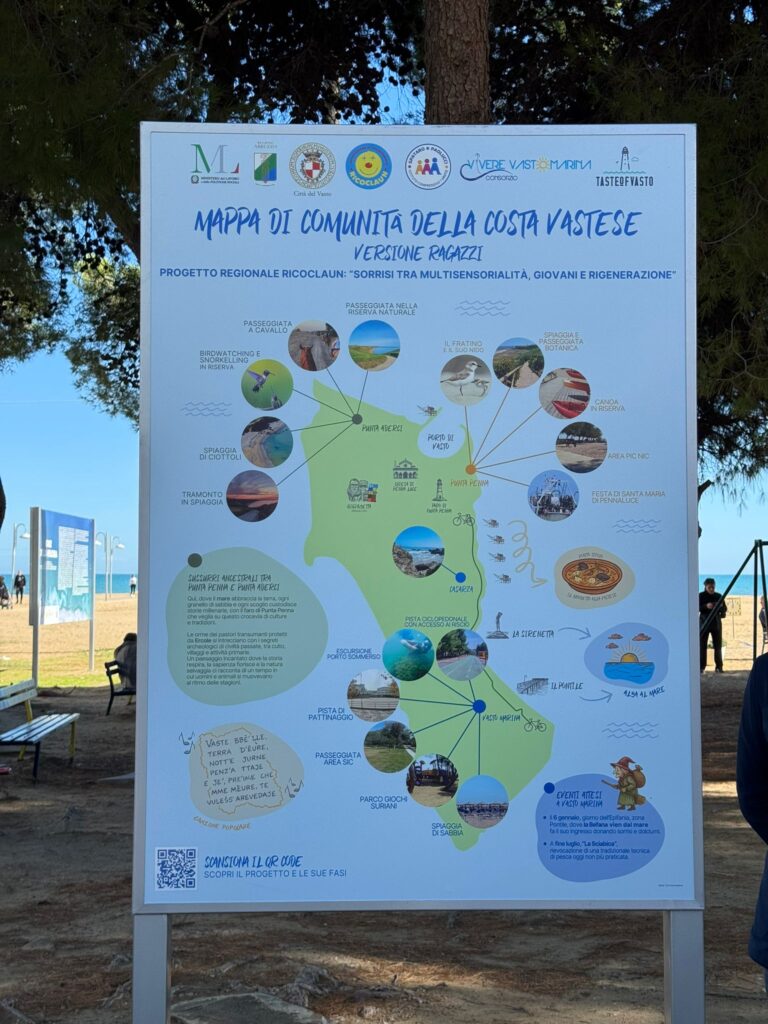 «È stata inaugurata il 25 ottobre 2025 la Mappa di Comunità dell’Area Costiera Vastese, realizzata nell’ambito del Progetto Regionale Ricoclaun “Sorrisi tra multi-sensorialità. Giovani e Rigenerazione”, con il coinvolgimento della Regione Abruzzo, del Comune di Vasto, dei ragazzi della scuola secondaria di primo grado “R. Paolucci”, di Annamargareth Ciccotosto e del Consorzio Vivere Vasto Marina». Lo comunica una nota dell’associazione.