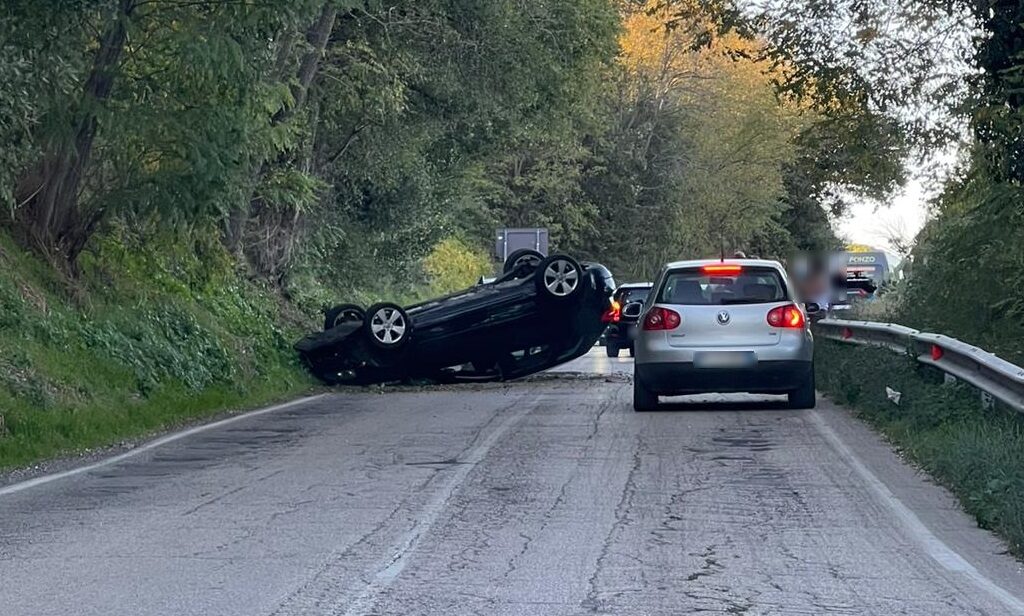 Un’auto si è ribaltata oggi pomeriggio sulla provinciale 157. L’incidente è avvenuto attorno alle 16,30 sulla strada attraversa contrada San Lorenzo, nella zona occidentale del territorio comunale.