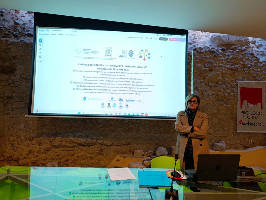 Si è svolto ieri, 28 ottobre, nella sala museale “Auditorium Sordello da Goito” di Monteodorisio, l’incontro informativo pubblico del progetto ChietiLab – Idee in Crescita, un’iniziativa promossa per sostenere i giovani del territorio nella trasformazione delle proprie idee in imprese concrete, sostenibili e innovative. L’evento ha rappresentato un’importante occasione di confronto e informazione sulle opportunità di formazione, supporto e accompagnamento offerte ai giovani nell’ambito del progetto.