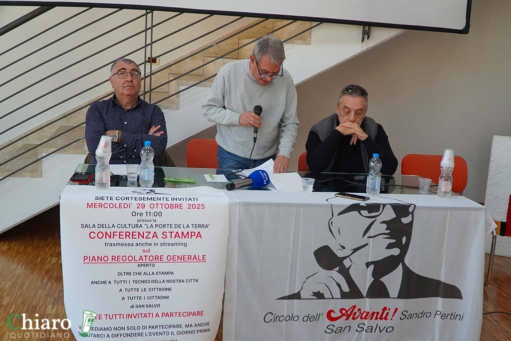 «L’amministrazione comunale faccia un passo indietro e favorisca la partecipazione». L’ultimo appello in ordine di tempo affinché si ritiri la delibera che di fatto commissaria l’iter del piano regolatore generale arriva dalla conferenza stampa pubblica convocata dal circolo Avanti! di San Salvo, tenutasi questa mattina alla Porta della Terra. Al centro c’è ancora la discussione sullo strumento urbanistico per il quale la maggioranza di centrodestra ha chiesto la nomina di un commissario.