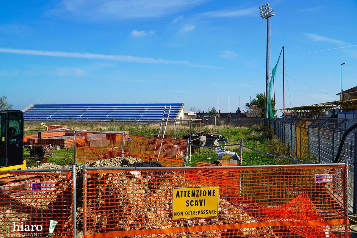 Al “Davide Bucci” arrivano i pilastri della tribuna, obiettivo: «Iniziare qui la prossima stagione»