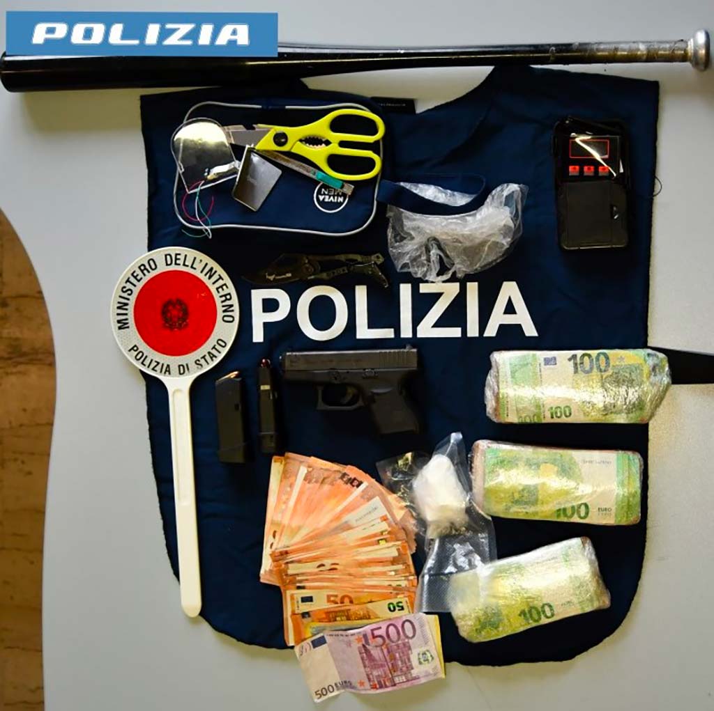 Nell’abitazione di un 44enne, pregiudicato, è stata rinvenuta una pistola calibro 9×21 con due caricatori per un totale di 16 cartucce, un involucro contenente 55 grammi di cocaina, strumentazione per il confezionamento di dosi, una mazza da baseball, un coltello a serramanico e la somma di circa 30mila euro in contanti. I successivi accertamenti sull’arma da fuoco hanno stabilito che si trattava del bottino di un furto in abitazione compiuto anni fa in un’altra provincia. Il 44enne, quindi, è stato arrestato in flagranza di reato per i delitti di detenzione ai fini di spaccio di sostanza stupefacente, detenzione abusiva e ricettazione dell’arma da fuoco.