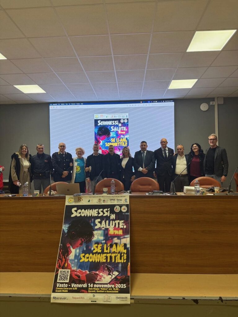 «Tutti i relatori hanno portato contributi preziosi – che possono essere visti e ascoltati sulla pagina Facebook dell’evento “Sconnessi in Salute. Se li Ami, Sconnettili!” a questo indirizzo https://fb.me/e/8chaIE0MT – indicando strade possibili, idee e soluzioni. Un pomeriggio che ha acceso speranza e responsabilità: perché solo insieme è possibile ritrovare il senso del legame, della cura e della presenza. L’incontro studio proseguirà con il concorso dedicato alle ragazze e ai ragazzi delle scuole medie di Vasto – grazie alla collaborazione delle dirigenti Eufrasia Fonzo e Cristina Eusebi e di tutto il corpo docente – per invitarli a riflettere ancora su questo tema e a creare, entro la fine di maggio 2026, un elaborato che racconti il loro punto di vista e che possa diffondere consapevolezza sui rischi derivanti da un abuso dell’utilizzo di tablet e telefonini. È prevista una premiazione e un incontro pubblico per presentare alla città tutti gli elaborati. Tutto ciò per trasformare un incontro in un percorso che continua nel tempo. Grazie alle associazioni “Riaccendi il Sorriso” (https://riaccendiilsorriso.com/home) e “Ricoclaun” (https://ricoclaun.it) organizzatrici dell’evento insieme al coordinamento del Dott. Teocrito Carlesi. Grazie ai relatori e alle relatrici Marco Simonetti, Rosaria Sommariva, Rosaria Spagnuolo, Giovanni Peluso, Sonia Fracassi, Nino Fuiano, Eufrasia Fonzo, Gian Mauro Placido, Laura Madonna, Fabio Falcone, Stefano Comparelli, Etelwardo Sigismondi, Emma Columbro, Pierangelo Trippitelli».