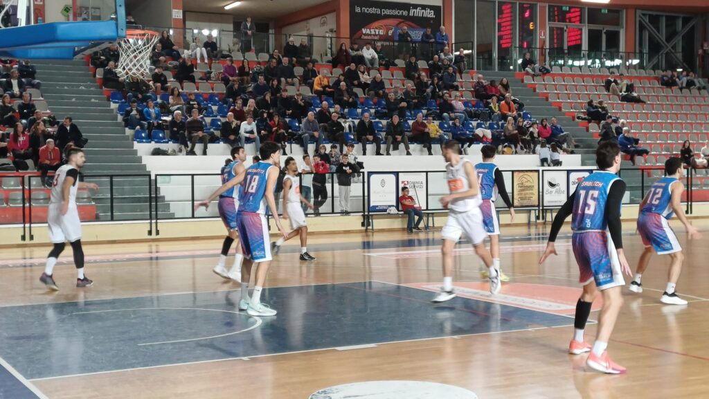 Nella decima giornata del girone F della Serie B Interregionale i biancorossi di coach Cazzorla sono inciampati nella terza sconfitta consecutiva. Una domenica complicata ma, nei primi due quarti, a reggere i vastesi erano state le 14 triple (sulle 17 totali), poi nella seconda parte di match, venuta meno la precisione dalla lunga distanza i marchigiani hanno preso il largo fino. Nel primo periodo vastesi avanti di 12 (34-22), vantaggio che ha resistito anche al rientro negli spogliatoi (48-40).