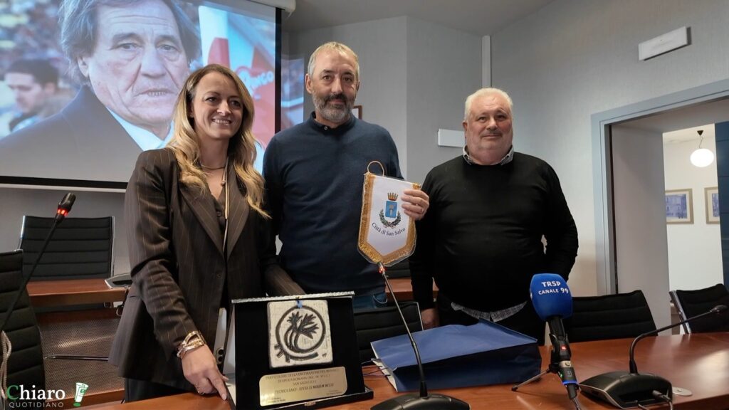 A chi gli chiede quanto sia fondamentale, nelle scuole calcio, la presenza di allenatori abilitati e non figure senza titoli Giampaolo è lapidario: «Su questo fronte potrei essere molto cattivo, per come intendo io il calcio in quelle fasce di età non servono allenatori ma figure che seguano i bimbi mentre si divertono con il pallone tra i piedi. Tutto il resto verrà negli anni a seguire». In chiusura dell’incontro a sorpresa il sindaco De Nicolis ha consegnato a mister Marco Giampaolo il gagliardetto della Città di San Salvo e una targa in ricordo della piacevole mattinata trascorsa in Comune. Un’occasione, nata grazie a Meuccio Di Santo, che ha rafforzato il legame tra la comunità calcistica sansalvese e figure di primo piano del calcio nazionale. Tra tanti selfie e la volontà di ritrovarsi, più in là, per un altro incontro, magari quando il “Davide Bucci” tornerà a splendere.
