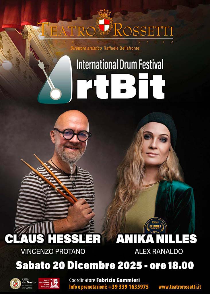 Vasto si prepara ad accogliere un appuntamento dedicato all’arte della batteria e del ritmo: ArtBit, evento batteristico internazionale che si terrà sabato 20 dicembre, alle ore 18, al Teatro “Rossetti”.